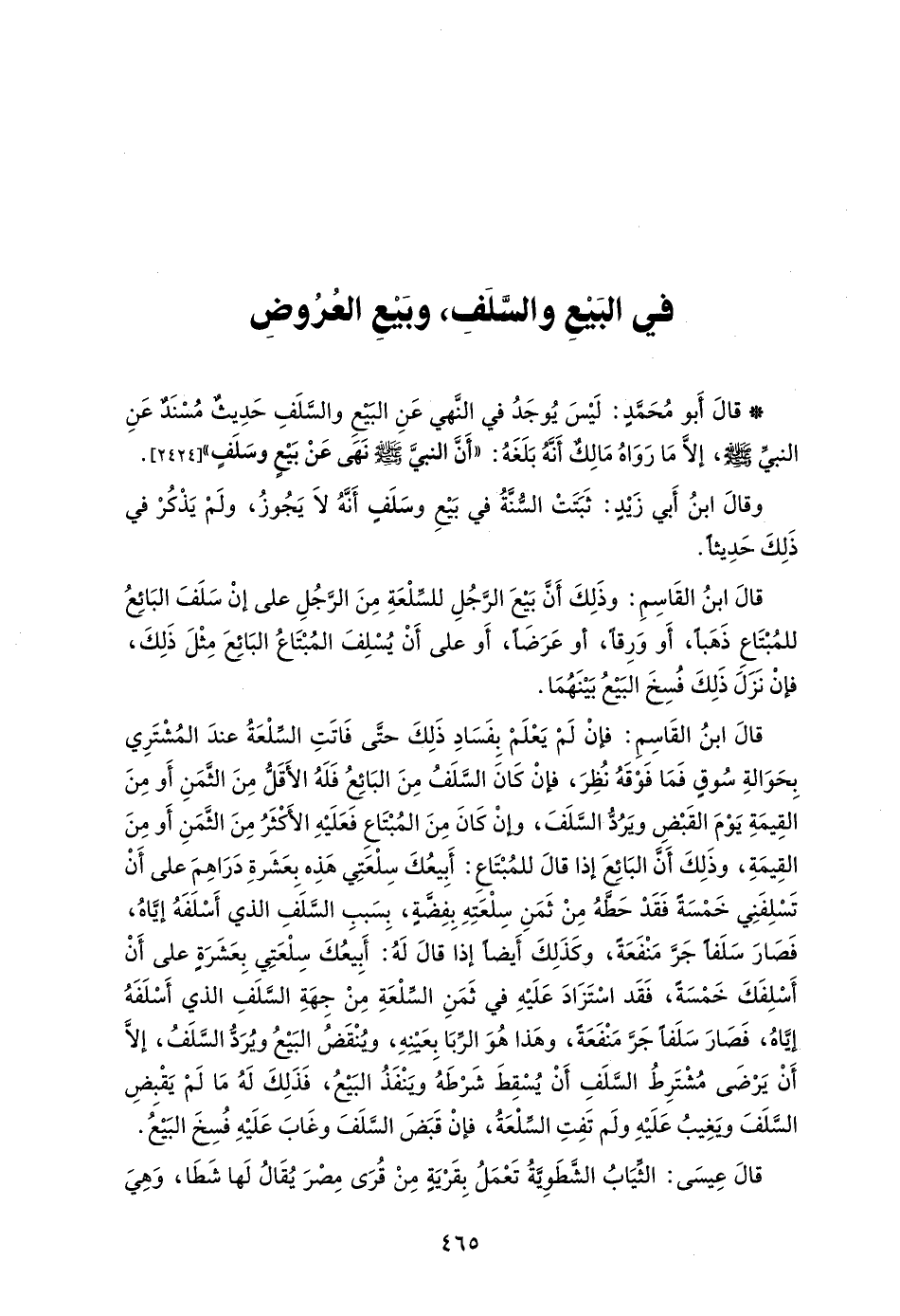 في البَيْعِ السَّلَفِ، وبَيْعِ العُرُوضِ