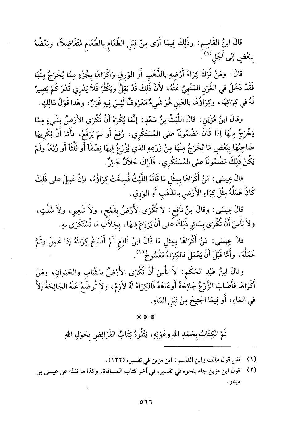 تَمَّ الكِتَابُ بِحَمْدِ اللهِ وعَوْنهِ، يَتْلُوهُ كِتَابُ الفَرَائِضِ بِحَوْلِ اللهِ