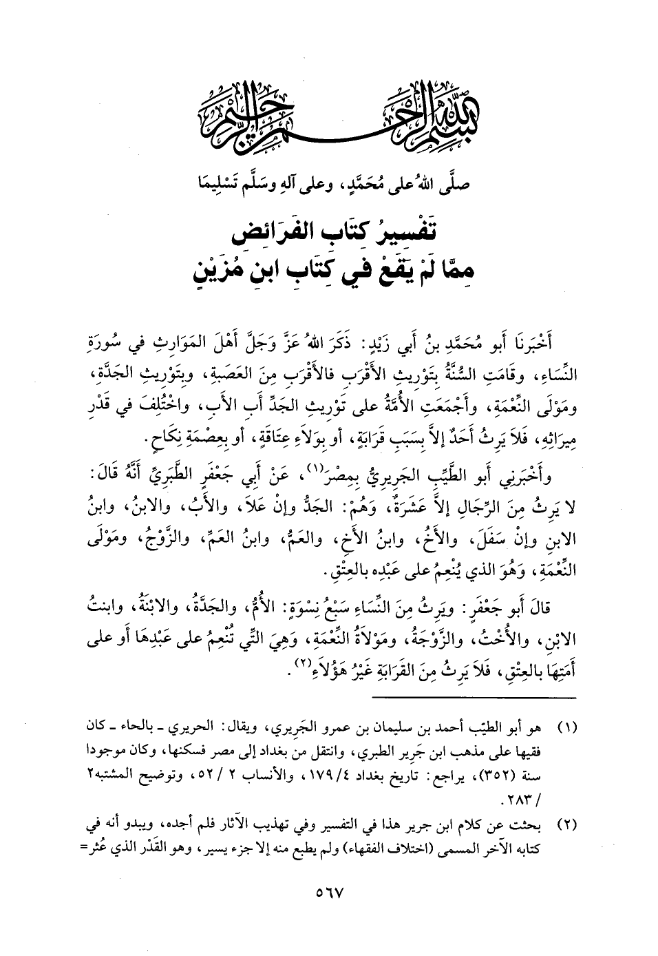 تَفْسِيرُ كِتَابِ الفَرَائِضِ