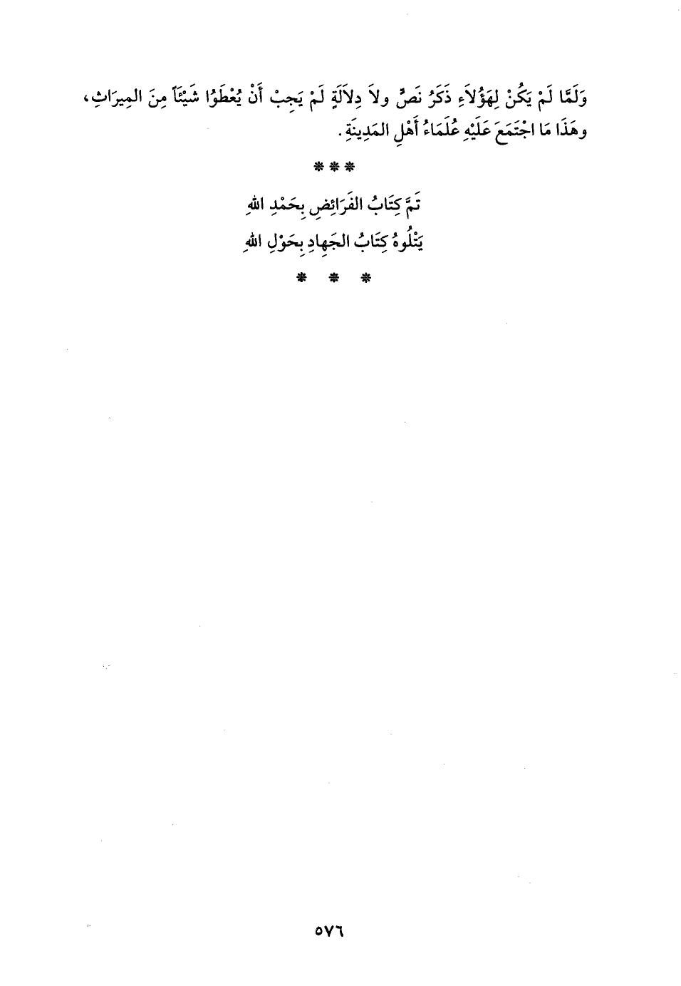 تَمَّ كِتَابُ الفَرَائِضِ بِحَمْدِ اللهِ