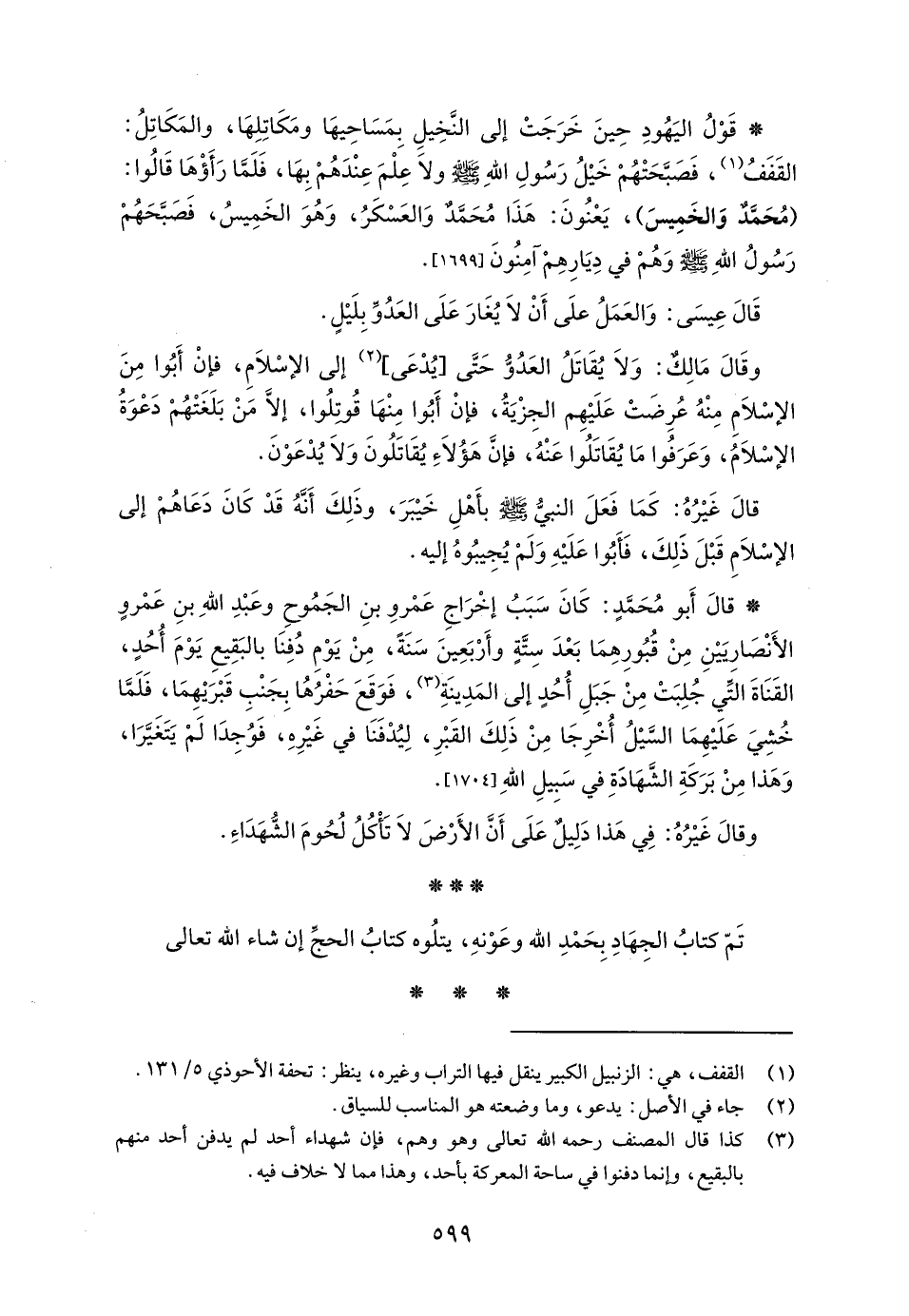 تَمّ كتابُ الجِهَادِ بِحَمْدِ الله وعَوْنهِ، يتلُوه كتابُ الحجِّ إن شاء الله تعالى