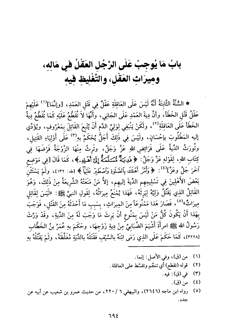 ومِيرَاثِ العَقْلِ، والتَّغْلِيظِ فِيهِ