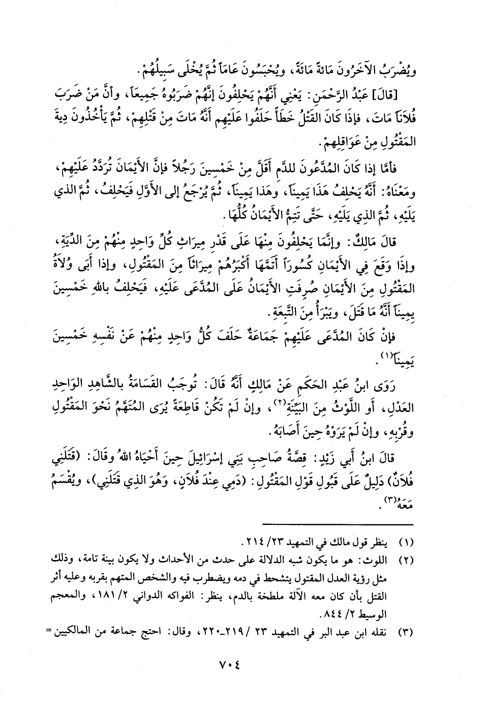 (¬2) اللوث: هو ما يكون شبه الدلالة على حديث من الأحداث ولا يكون بينة تامة، وذلك مثل رؤية العدل المقتول يتشحط في دمه ويضطرب فيه والشخص المتهم بقربه وعليه أثر القتل بأن كان معه الآلة ملطخة بالدم، ينظر: الفواكه الدواني 2/ 181، والمعجم الوسيط 2/ 844.