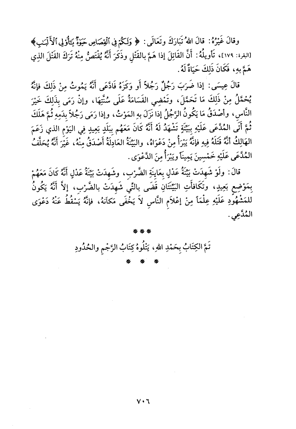 تَمَّ الكِتَابُ بِحَمْدِ اللهِ، يَتْلُوهُ كِتَابُ الرَّجْمِ والحُدُودِ