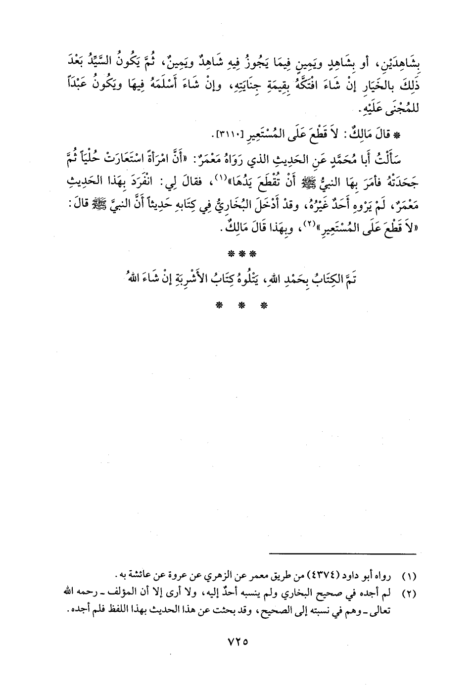 * قالَ مَالِكٌ: لا قَطْعَ عَلَى المُسْتَعِيرِ [3110].