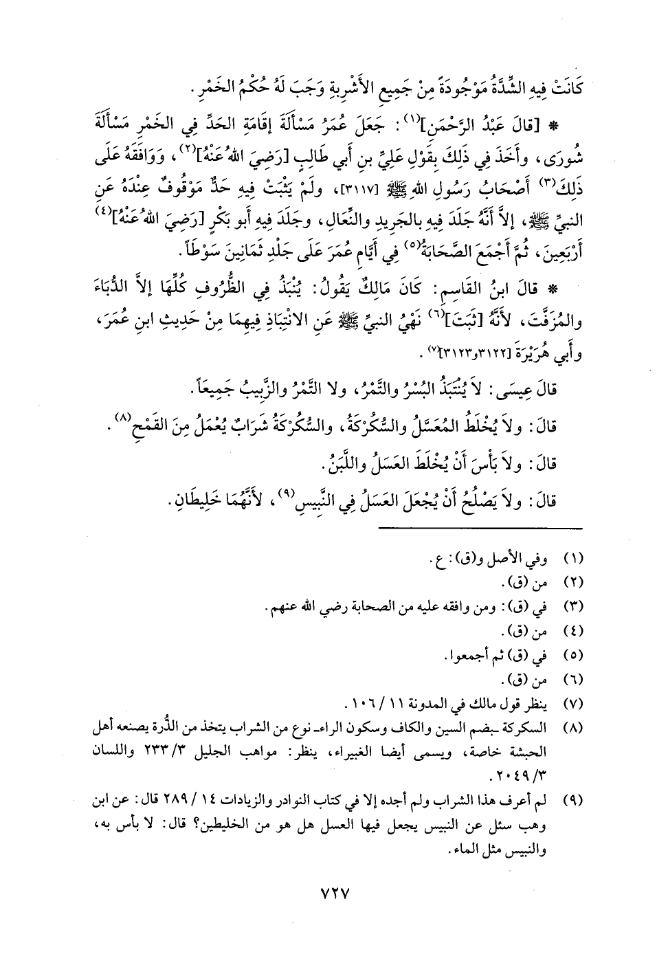 (¬9) لم أعرف هذا الشراب ولم أجده إلا في كتاب النوادر والزيادات 14/ 289 قال: عن ابن وهب سئل عن النبيس يجعل فيها العسل هل هو من الخليطين؟ قال: لا بأس به، والنبيس مثل الماء.