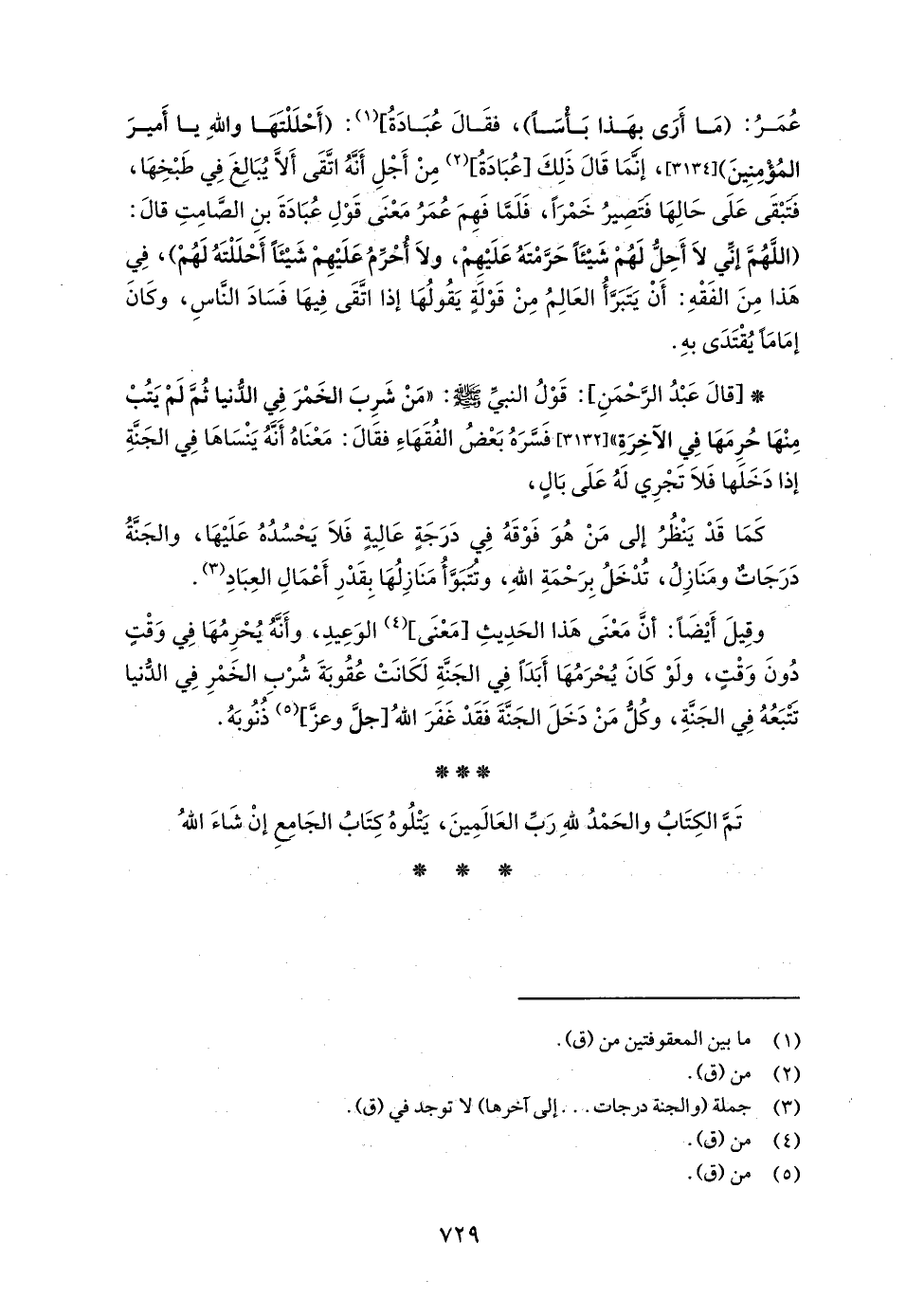 تَمَّ الكِتَابُ والحَمْدُ للهِ رَبِّ العَالَمِينَ، يَتْلُوهُ كِتَابُ الجَامِعِ إنْ شَاءَ اللهُ