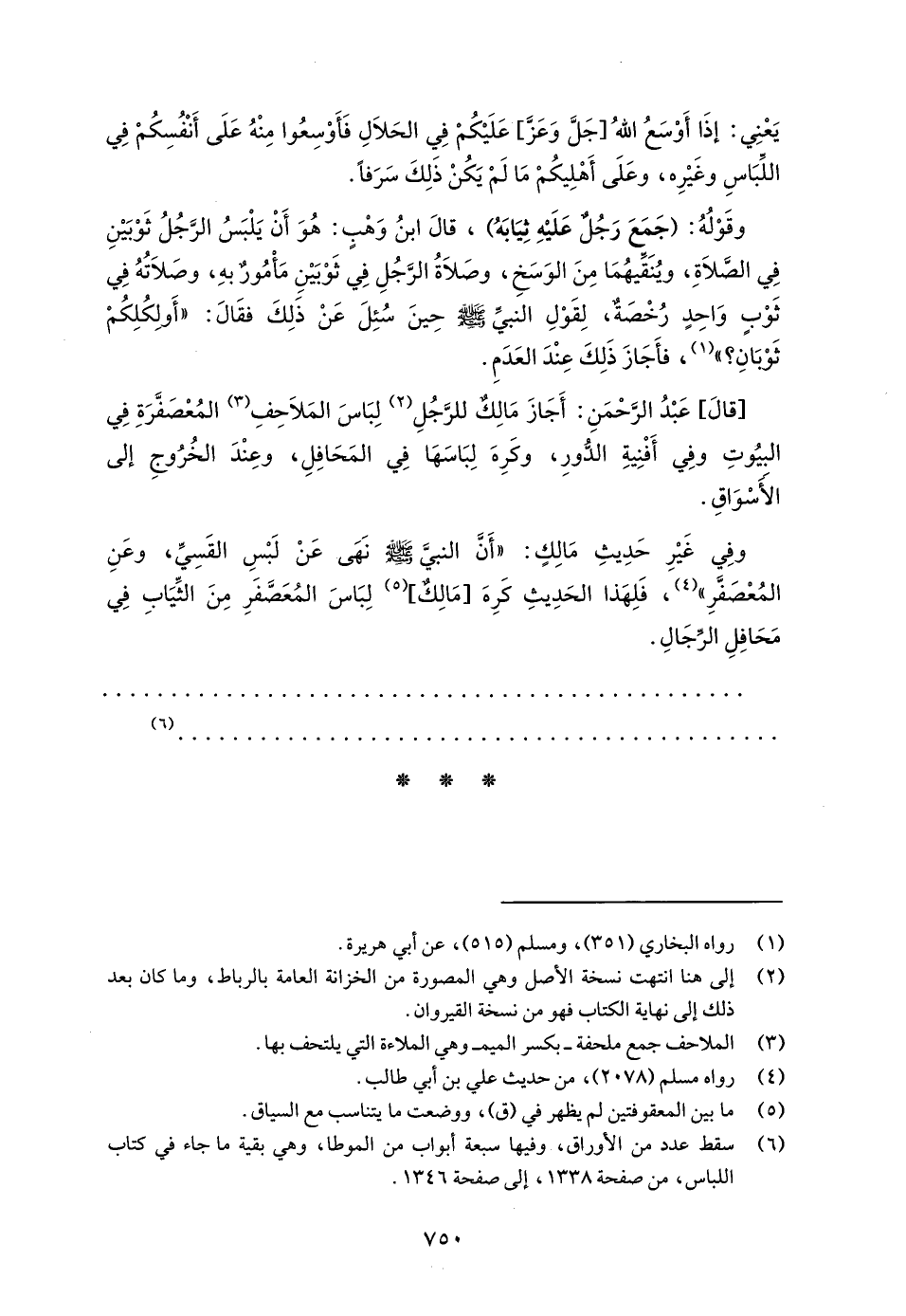 (¬6) سقط عدد من الأوراق، وفيها سبعة أبواب من الموطأ، وهي بقية ما جاء في كتاب اللباس، من صفحة 1338، إلى صفحة 1346.