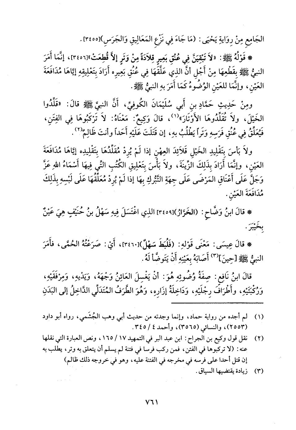 (¬2) نقل قول وكيع بن الجراح: ابن عبد البر في التمهيد 17/ 165، ونص العبارة التي نقلها عنه: (لا تركبوها في الفتن، فمن ركب فرساً في فتنة لم يسلم أن يتعلق به وتر، يطلب به إن قتل أحداً على فرسه في مخرجه في الفتنة عليه، وهو في خروجه ذلك ظالم)