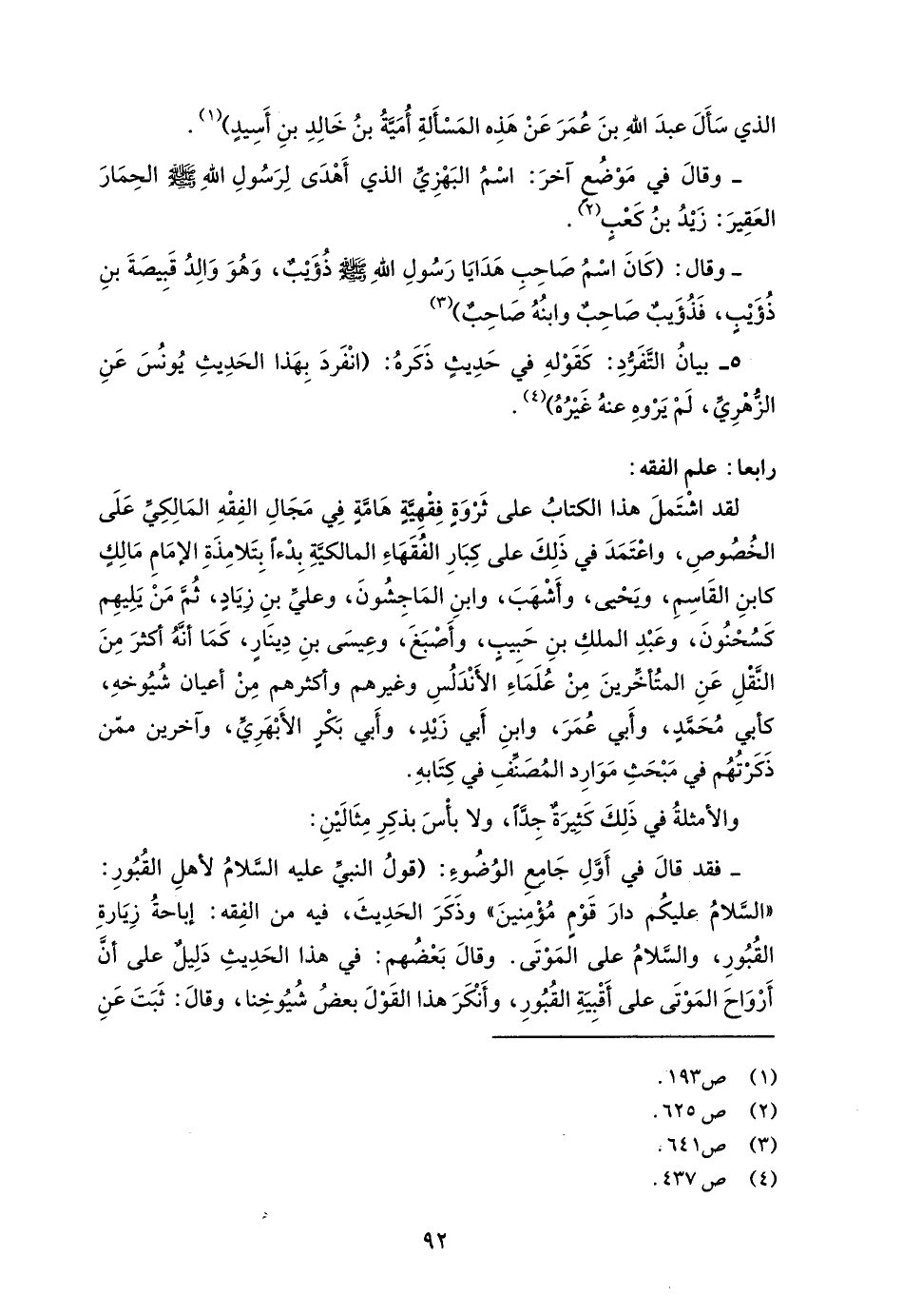 لقد اشتَملَ هذا الكتابُ على ثَرْوَةٍ فِقْهِيَّةٍ هَامَّةٍ فِي مَجَالِ الفِقْهِ المَالِكِيِّ عَلَى الخُصُوصِ، واعْتَمَدَ في ذَلِكَ على كِبَارِ الفُقَهَاءِ المالكيَّةِ بِدْءاً بِتَلامِذَةِ الإمَامِ مالِكٍ كابنِ القَاسِمِ، وَيحْيى، وأَشْهَبَ، وابنِ المَاجِشُونَ، وعليِّ بنِ زِيَادٍ، ثُمَّ مَنْ يَلِيهِم كَسُحْنُونَ، وعَبْدِ الملكِ بنِ حَبيبٍ، واصْبَغَ، وعِيسَى بنِ دِينَارٍ، كَمَا أنَّهُ أكثرَ مِنَ النَّقْلِ عَنِ المتُأخِّرينَ مِن عُلَمَاَءِ الأَنْدَلُسِ وغيرهم وأكثرهم مِنْ أعيان شُيُوخهِ، كأبي مُحَمَّدٍ، وأَبي عُمَرَ، وابنِ أَبي زَيدٍ، وأَبي بَكْرٍ الأَبهَريِّ، وآخرين ممّن ذَكَرْتهُم في مَبْحَثِ مَوَارِد المُصَنِّفِ في كِتَابهِ.