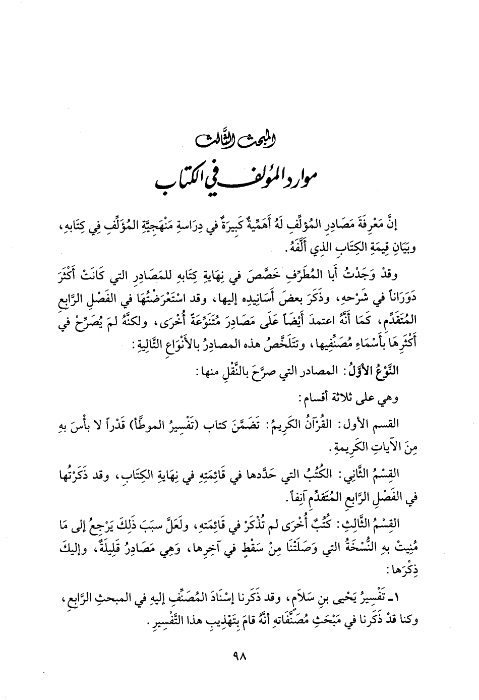 1 - تَفْسِيرُ يَحْيى بنِ سَلاَمٍ، وقد ذَكَرنا إسْنَادَ المُصَنِّفِ إليهِ في المبحثِ الرَّابعِ، وكنا قدْ ذَكَرنا في مَبْحَثِ مُصَنَّفَاتهِ أنَّهُ قامَ بِتَهْذِيبِ هذا التَّفْسِيرِ.