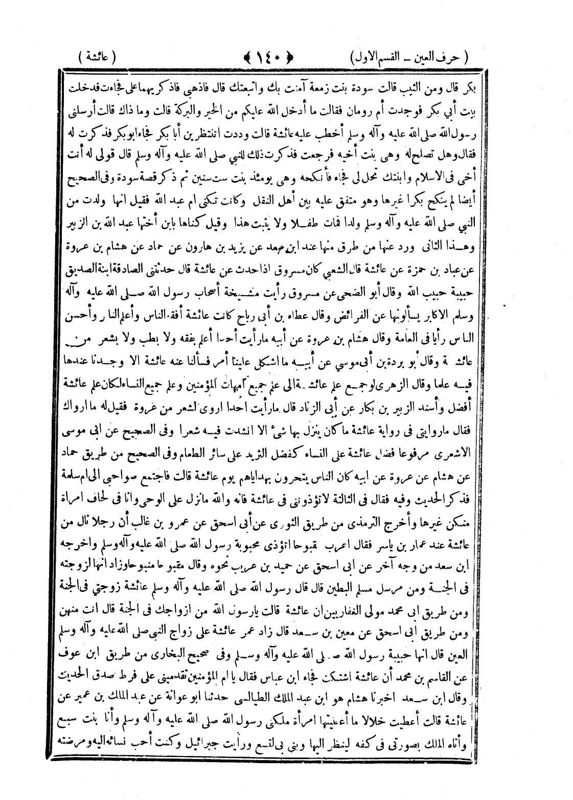 <140> بكر قال ومن الثيب قالت سودة بنت زمعة آمنت بك واتبعتك قال فاذهبي فاذكريهما علي فجاءت فدخلت بيت أبي بكر فوجدت أم رومان فقالت ما أدخل الله عليكم من الخير والبركة قالت وما ذاك قالت أرسلني رسول الله صلى الله عليه وسلم أخطب عليه عائشة قالت وددت انتظري أبا بكر فجاء أبو بكر فذكرت له فقال وهل تصلح له وهي بنت أخيه فرجعت فذكرت ذلك للنبي صلى الله عليه وسلم قال قولي له أنت أخي في الإسلام وابنتك تحل لي فجاء فأنكحه وهي يومئذ بنت ست سنين ثم ذكر قصة سودة وفي الصحيح أيضا لم ينكح بكرا غيرها وهو متفق عليه بين أهل النقل وكانت تكنى أم عبد الله فقيل إنها ولدت من النبي صلى الله عليه وسلم ولدا فمات طفلا ولم يثبت هذا وقيل كناها بابن أختها عبد الله بن الزبير وهذا الثاني ورد عنها من طرق منها عند بن سعد عن يزيد بن هارون عن حماد عن هشام بن عروة عن عباد بن حمزة عن عائشة قال الشعبي كان مسروق إذا حدث عن عائشة قال حدثتني الصادقة ابنة الصديق حبيبة حبيب الله وقال أبو الضحى عن مسروق رأيت مشيخة أصحاب رسول الله صلى الله عليه وسلم الأكابر يسألونها عن الفرائض وقال عطاء بن أبي رباح كانت عائشة أفقه الناس وأعلم الناس وأحسن الناس رأيا في العامة وقال هشام بن عروة عن أبيه ما رأيت أحدا أعلم بفقه ولا بطب ولا بشعر من عائشة وقال أبو بردة بن أبي موسى عن أبيه ما أشكل علينا أمر فسألنا عنه عائشة إلا وجدنا عندها فيه علما وقال الزهري لو جمع علم عائشة إلى علم جميع أمهات المؤمنين وعلم جميع النساء لكان علم عائشة أفضل وأسند الزبير بن بكار عن أبي الزناد قال ما رأيت أحدا أروى لشعر من عروة فقيل له ما أرواك فقال ما روايتي في رواية عائشة ما كان ينزل بها شيء إلا أنشدت فيه شعرا وفي الصحيح عن أبي موسى الأشعري مرفوعا فضل عائشة على النساء كفضل الثريد على سائر الطعام وفي الصحيح من طريق حماد عن هشام بن عروة عن أبيه كان الناس يتحرون بهداياهم يوم عائشة قالت فاجتمع صواحبي إلى أم سلمة فذكر الحديث وفيه فقال في الثالثة لا تؤذوني في عائشة فإنه والله ما نزل علي الوحي وأنا في لحاف امرأة منكن غيرها وأخرج الترمذي من طريق الثوري عن أبي إسحاق عن عمرو بن غالب أن رجلا نال من عائشة عند عمار بن ياسر فقال أعزب مقبوحا أتؤذي محبوبة رسول الله صلى الله عليه وسلم وأخرجه بن سعد من وجه آخر عن أبي إسحاق عن حميد بن عريب نحوه وقال مقبوحا منبوحا وزاد أنها لزوجته في الجنة وعن مرسل مسلم البطين قال قال رسول الله صلى الله عليه وسلم عائشة زوجتي في الجنة ومن طريق أبي محمد مولى الغفاريين أن عائشة قالت يا رسول الله من أزواجك في الجنة قال أنت منهن ومن طريق أبي إسحاق عن سفيان بن سعد قال زاد عمر عائشة على أزواج النبي صلى الله عليه وسلم ألفين وقال أنها حبيبة رسول الله صلى الله عليه وسلم وفي صحيح البخاري من طريق بن عون عن القاسم بن محمد أن عائشة اشتكت فجاء بن عباس فقال يا أم المؤمنين تقدميني على فرط صدق الحديث وقال بن سعد أخبرنا هشام هو بن عبد الملك الطيالسي حدثنا أبو عوانة عن عبد الملك بن عمير عن عائشة قالت أعطيت خلالا ما أعطيتها امرأة ملكني رسول الله صلى الله عليه وسلم وأنا بنت سبع وأتاه الملك بصورتي في كفه لينظر إليها وبني بن لتسع ورأيت جبرائيل وكنت أحب نسائه إليه ومرضته §