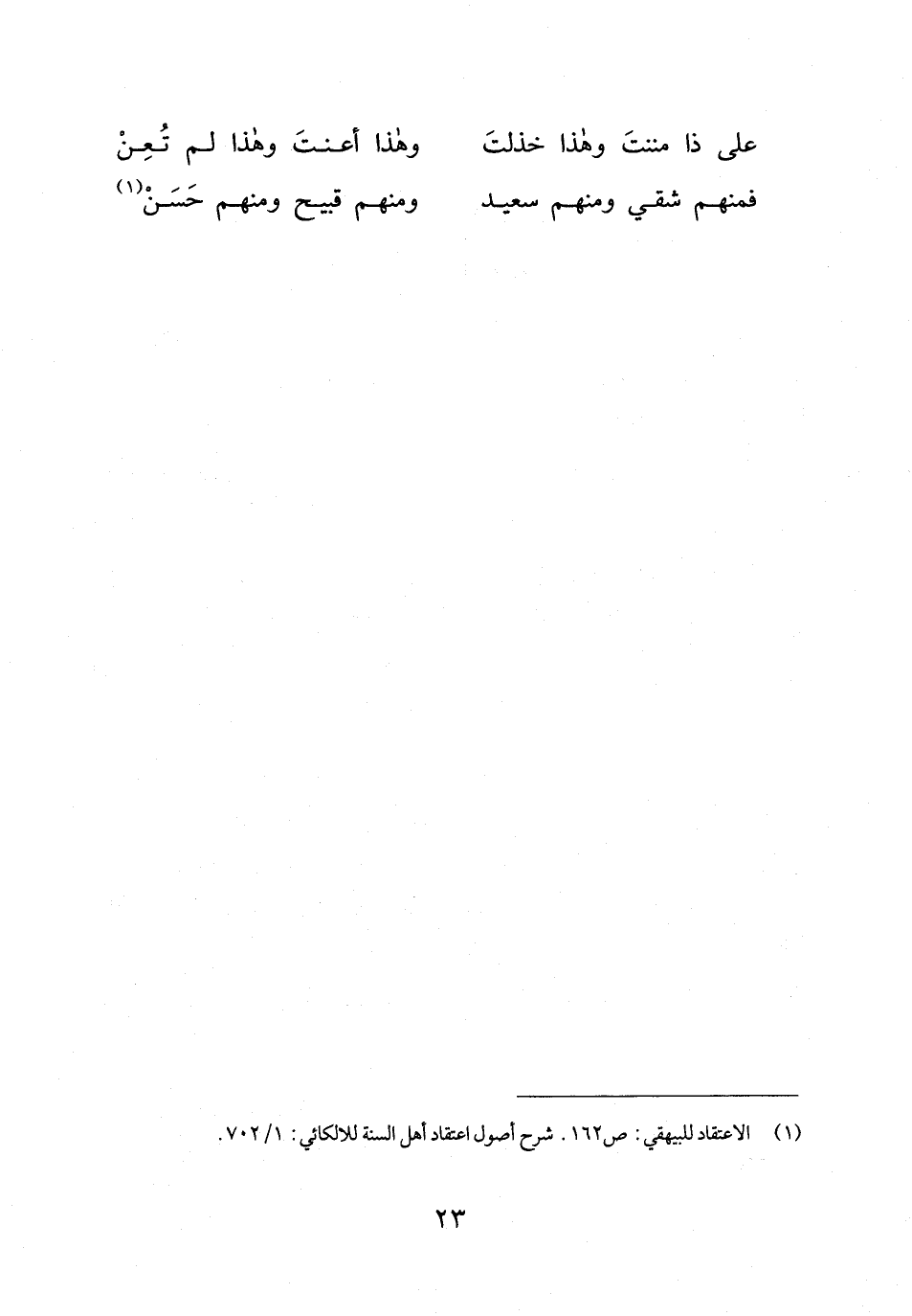 فمنهم شقي ومنهم سعيد ××× ومنهم قبيح ومنهم حَسَنْ (¬1)