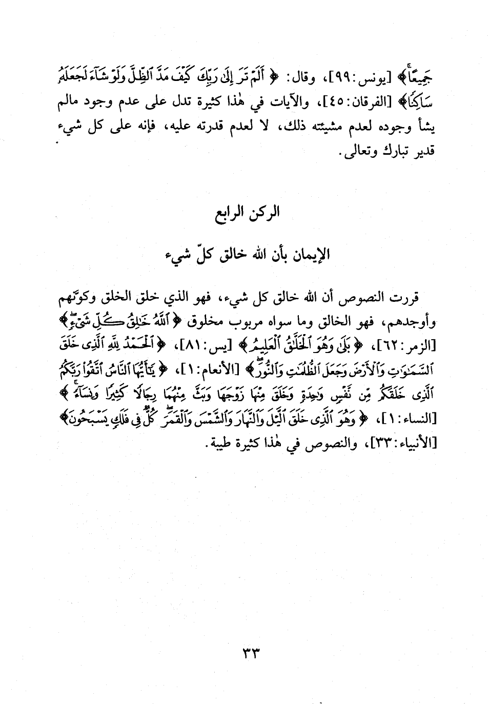 قررت النصوص أن الله خالق كل شيء، فهو الذي خلق الخلق وكوَّنهم وأوجدهم، فهو الخالق وما سواه مربوب مخلوق (الله خالق كل شيء) [الزمر: 62] ، (بلى وهو الخلاق العليم) [يسن: 81] ، (الحمد لله الذي خلق السماوات والأرض وجعل الظلمات والنور) [الأنعام: 1] ، (يا أيها الناس اتقوا ربكم الذي خلقكم من نفس واحدة وخلق منها زوجها وبث منهما رجالاً كثيراً ونساءً) [النساء: 1] ، (وهو الذي خلق الليل والنهار والشمس والقمر كلٌ في فلك يسبحون) [الأنبياء: 33] ، والنصوص في هذا كثيرة طيبة.