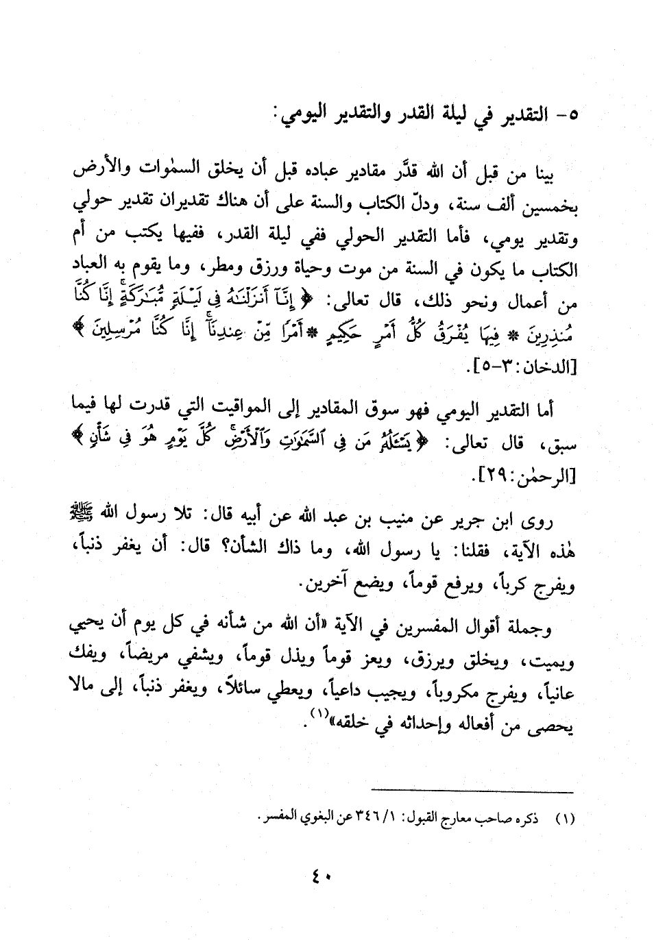 5- التقدير في ليلة القدر والتقدير اليومي: