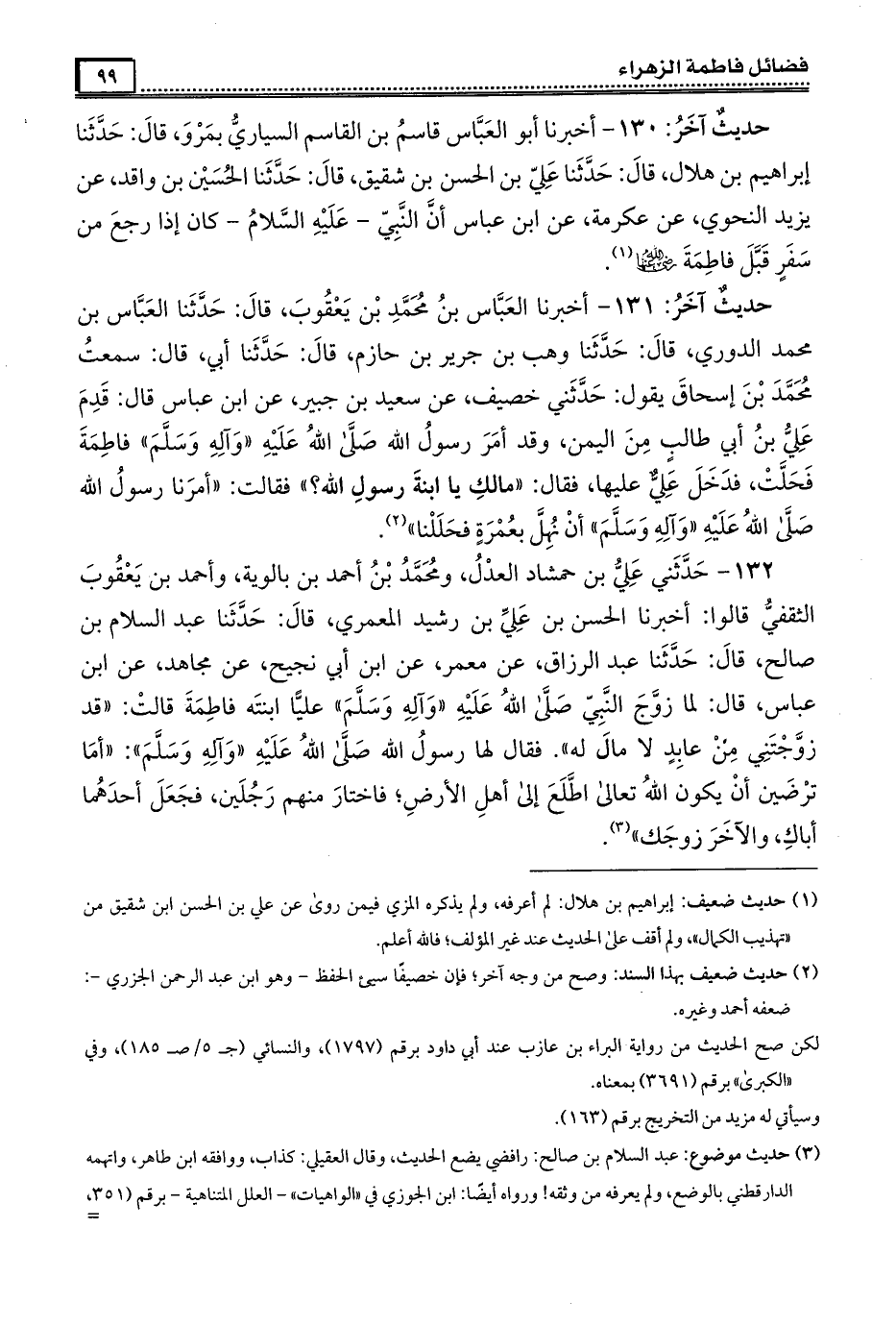 130- أَخْبَرَنَا أبو العباس قاسم بن القاسم السياري بمرو ، قال : حَدَّثَنَا إبراهيم بن هلال ، قال : حَدَّثَنَا علي بن الحسن بن شقيق ، قال : حَدَّثَنَا الحسين بن واقد عن يزيد النحوي عن عكرمة عن ابن عباس أن النبي عليه السَّلام كان إذا رجع من سفر قبل فَاطِمَة رَضِىَ الله عَنْها .