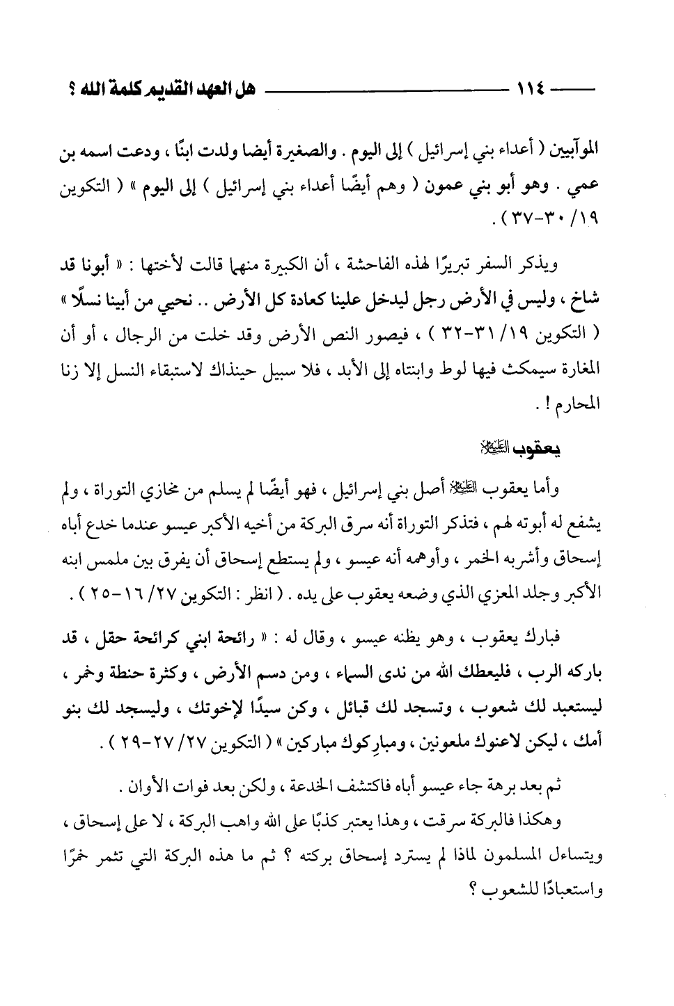وهكذا فالبركة سرقت، وهذا يعتبر كذباً على الله واهب البركة، لا على إسحاق، ويتساءل المسلمون لماذا لم يسترد إسحاق بركته؟ ثم ما هذه البركة التي تثمر خمراً واستعباداً للشعوب؟