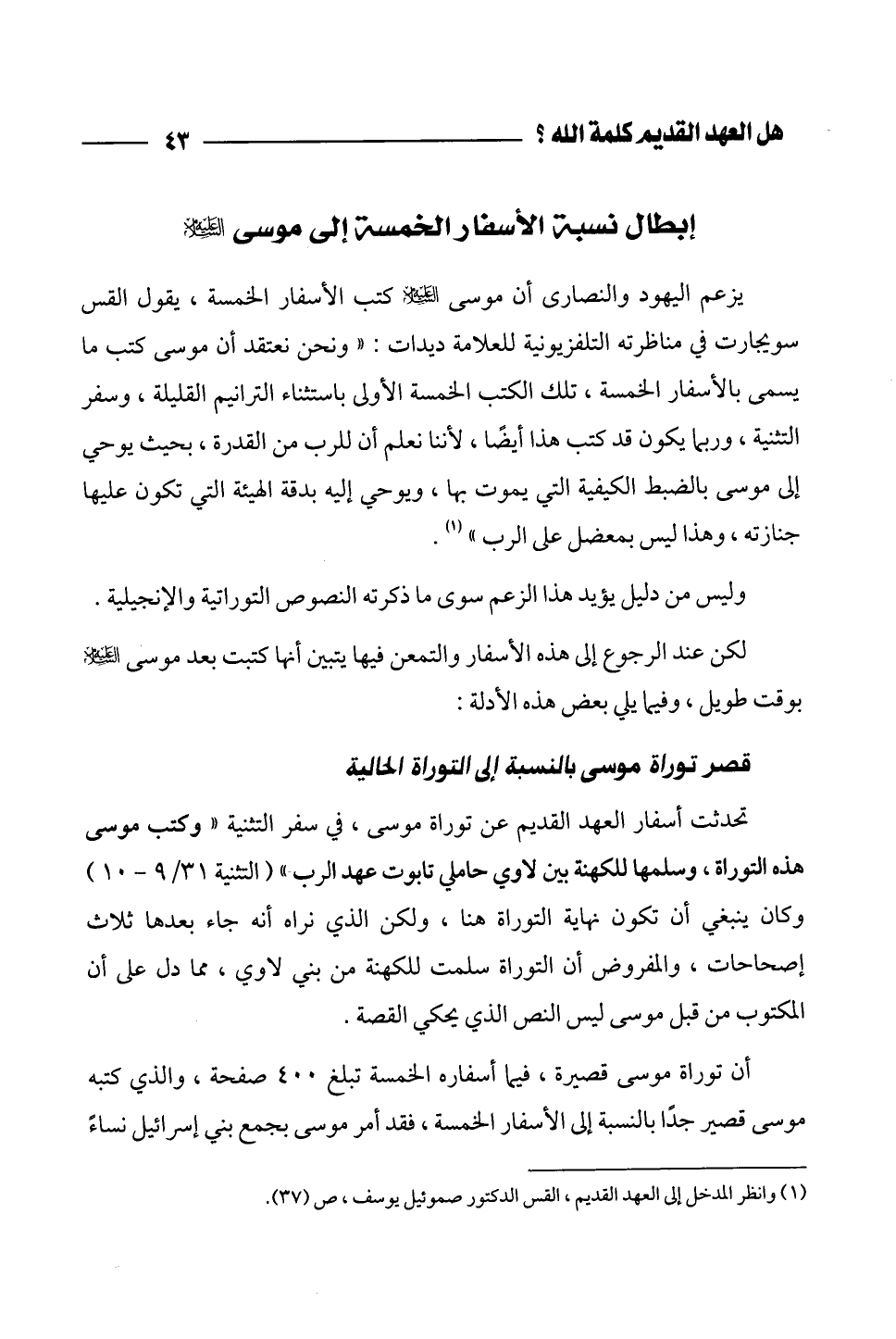 إبطال نسبة الأسفار الخمسة إلى موسى عليه السلام