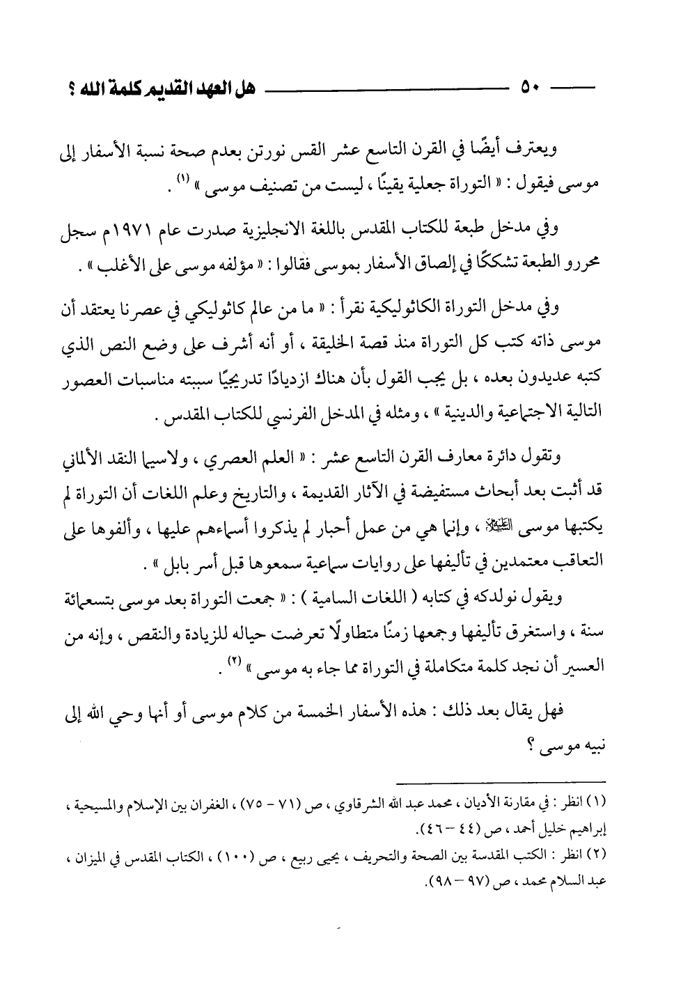 (¬2) انظر: الكتب المقدسة بين الصحة والتحريف، يحيى ربيع، ص (100)، الكتاب المقدس في الميزان، عبد السلام محمد، ص (97 - 98).