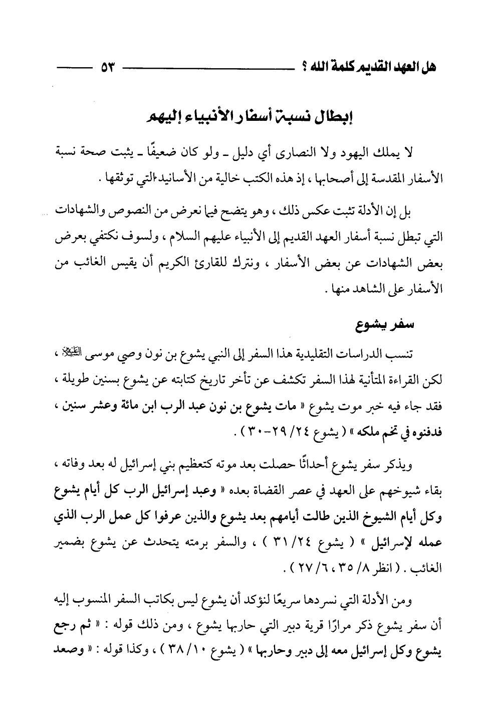 بل إن الأدلة تثبت عكس ذلك، وهو يتضح فيما نعرض من النصوص والشهادات التي تبطل نسبة أسفار العهد القديم إلى الأنبياء عليهم السلام، ولسوف نكتفي بعرض بعض الشهادات عن بعض الأسفار، ونترك للقارئ الكريم أن يقيس الغائب من الأسفار على الشاهد منها.