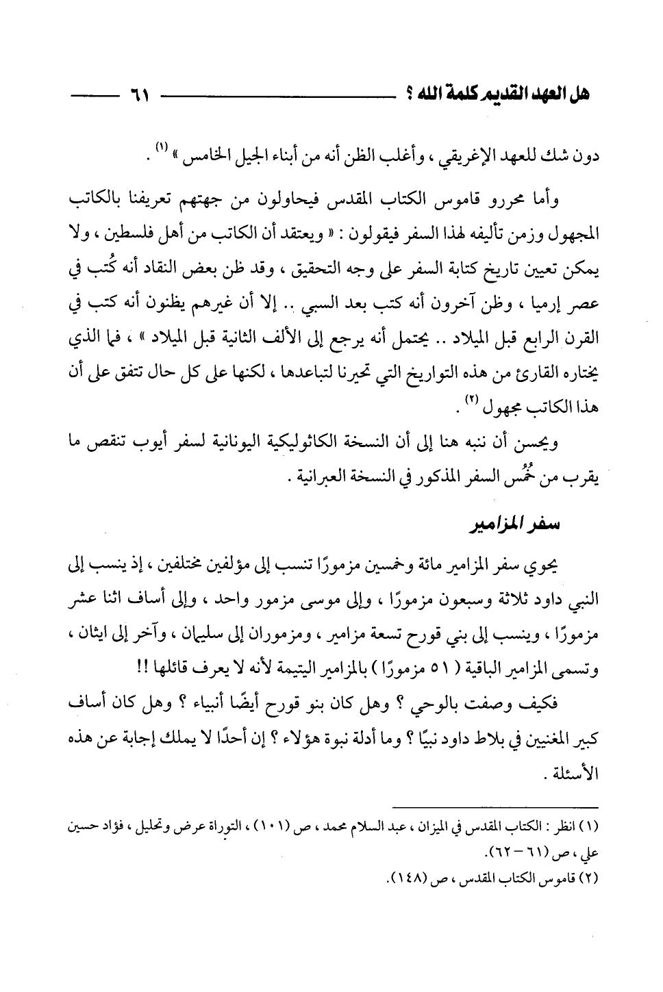 (¬1) انظر: الكتاب المقدس في الميزان، عبد السلام محمد، ص (101)، التوراة عرض وتحليل، فؤاد حسين علي، ص (61 - 62).