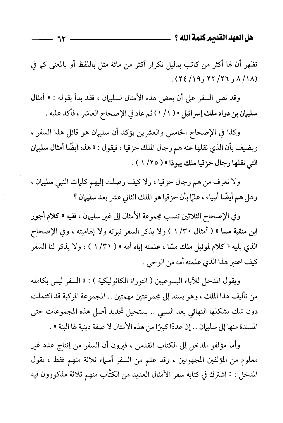 وكذا في الإصحاح الخامس والعشرين يؤكد أن سليمان هو قائل هذا السفر، ويضيف بأن الذي نقلها عنه هم رجال الملك حزقيا، فيقول: " هذه أيضاً أمثال سليمان التي نقلها رجال حزقيا ملك يهوذا " (25/ 1).