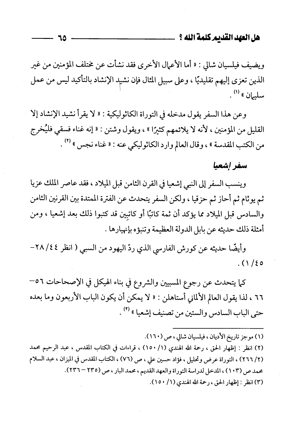 (¬2) انظر: إظهار الحق، رحمة الله الهندي (1/ 150)، قراءات في الكتاب المقدس، عبد الرحيم محمد (2/ 266)، التوراة عرض وتحليل، فؤاد حسين علي، ص (76)، الكتاب المقدس في الميزان، عبد السلام محمد ص (103)، المدخل لدراسة التوراة والعهد القديم، محمد البار، ص (235 - 236).