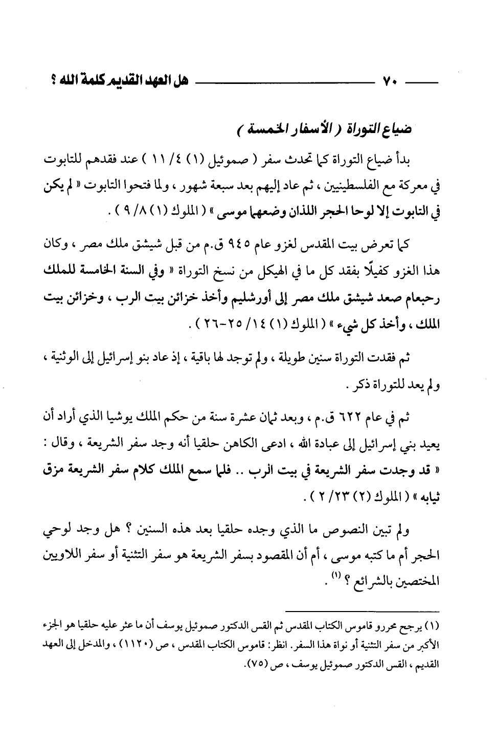 (¬1) يرجح محررو قاموس الكتاب المقدس ثم القس الدكتور صموئيل يوسف أن ما عثر عليه حلقيا هو الجزء الأكبر من سفر التثنية أو نواة هذا السفر. انظر: قاموس الكتاب المقدس، ص (1120)، والمدخل إلى العهد القديم، القس الدكتور صموئيل يوسف، ص (75).