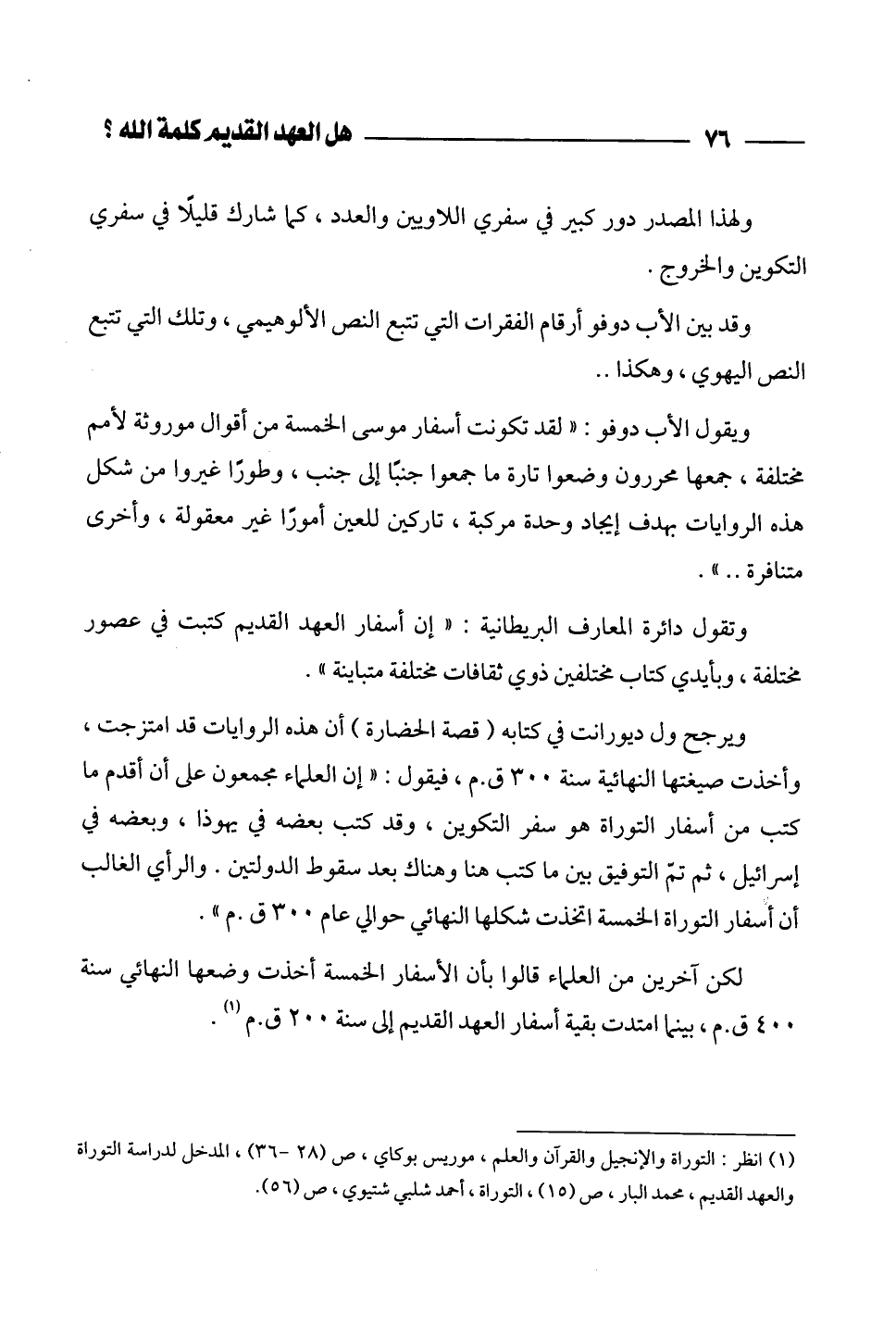 (¬2) انظر: التوراة والإنجيل والقرآن والعلم، موريس بوكاي، ص (28 - 36)، المدخل لدراسة التوراة والعهد القديم، محمد البار، ص (15)، التوراة، أحمد شلبي شتيوي، ص (56).
