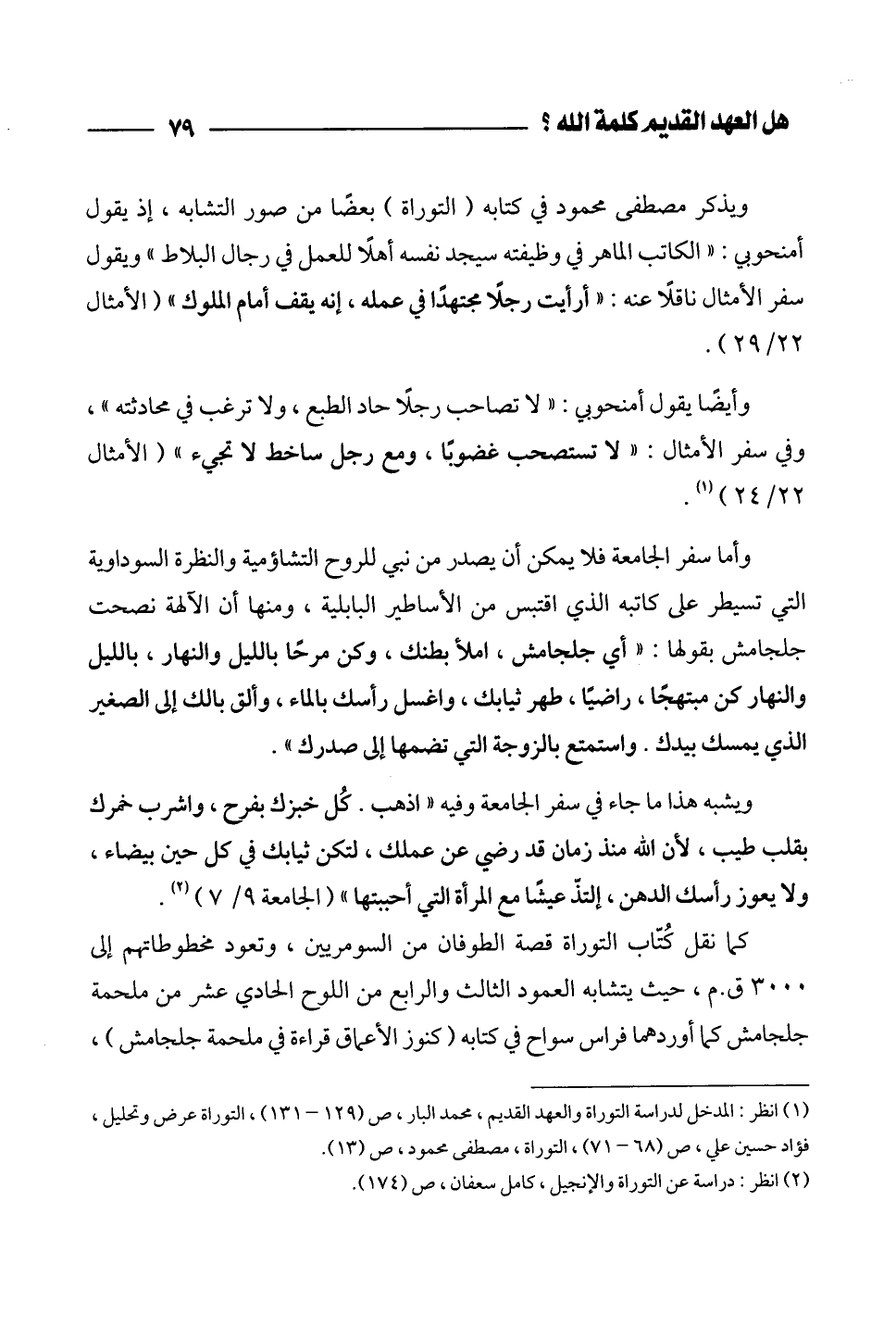 (¬1) انظر: المدخل لدراسة التوراة والعهد القديم، محمد البار، ص (129 - 131)، التوراة عرض وتحليل، فؤاد حسين علي، ص (68 - 71)، التوراة، مصطفى محمود، ص (13).