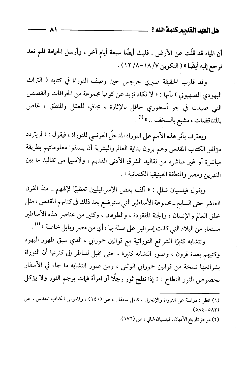 (¬2) انظر: دراسة عن التوراة والإنجيل، كامل سعفان، ص (140)، وقاموس الكتاب المقدس، ص (582 - 584).