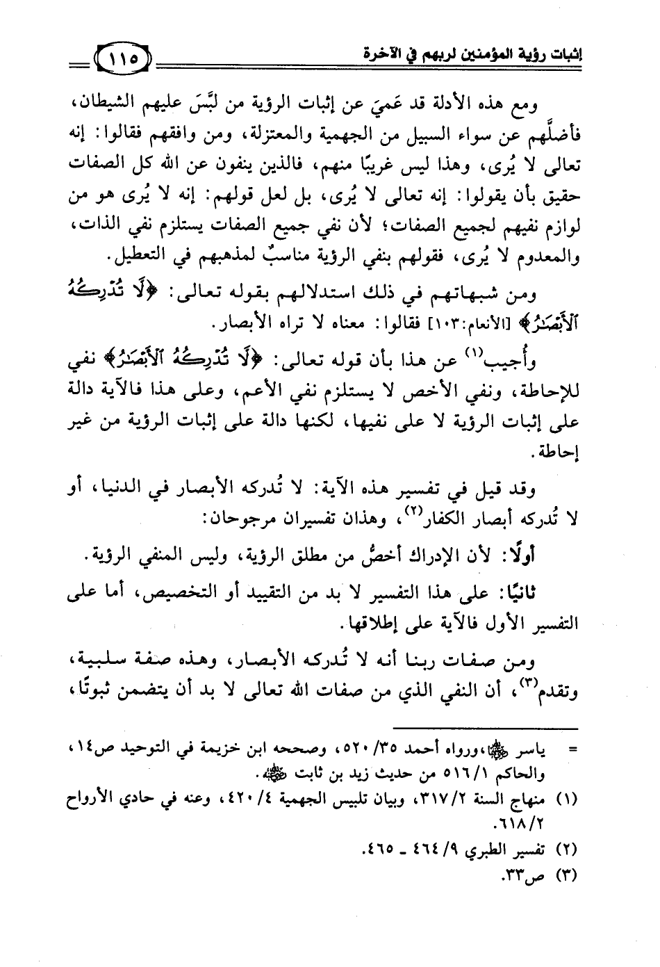 وقد قيل في تفسير هذه الآية: لا تُدركه الأبصار في الدنيا، أو لا تُدركه أبصار الكفار (¬2)، وهذان تفسيران مرجوحان: