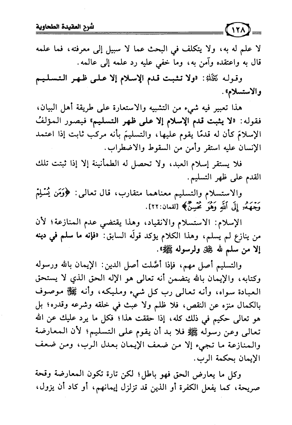 فلا يستقر إسلام العبد، وتحصل له الطمأنينة إلا إذا ثبتت تلك القدم على ظهر التسليم.