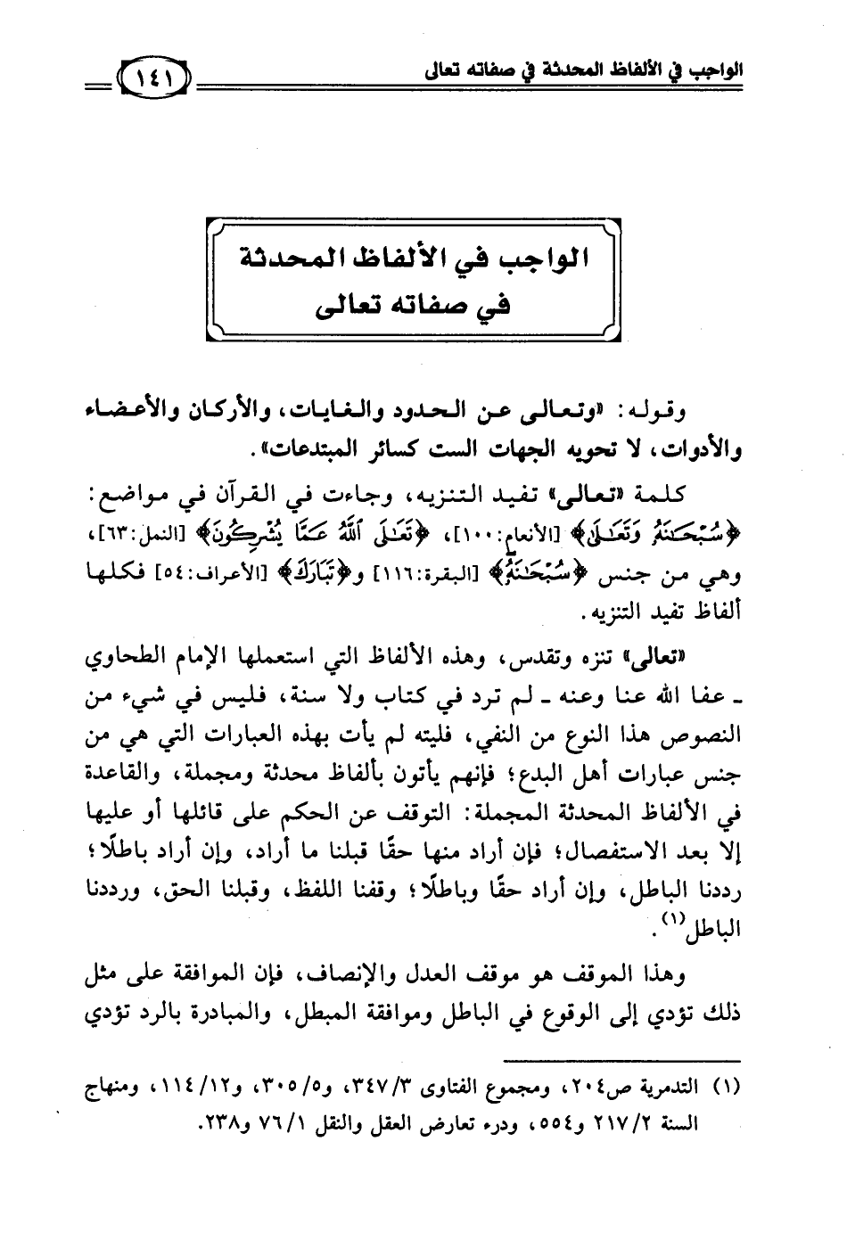 (¬1) التدمرية ص 204، ومجموع الفتاوى 3/ 347، و 5/ 305، و 12/ 114، ومنهاج السنة 2/ 217 و 554، ودرء تعارض العقل 1/ 76 و 238.