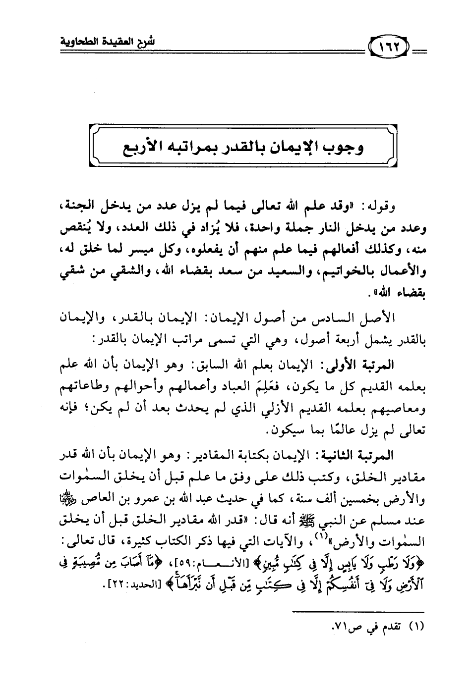[وجوب الإيمان بالقدر بمراتبه الأربع]