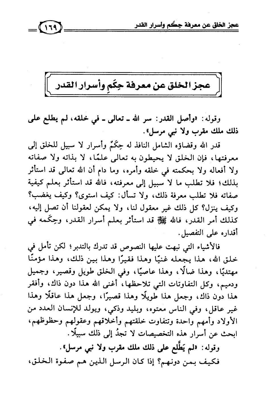 [عجز الخلق عن معرفة حِكَمِ وأسرار القدر]