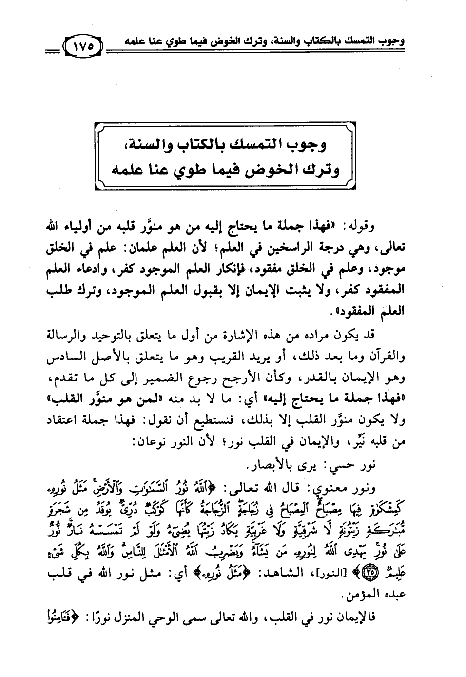 [وجوب التمسك بالكتاب والسنة، وترك الخوض فيما طوي عنا علمه]