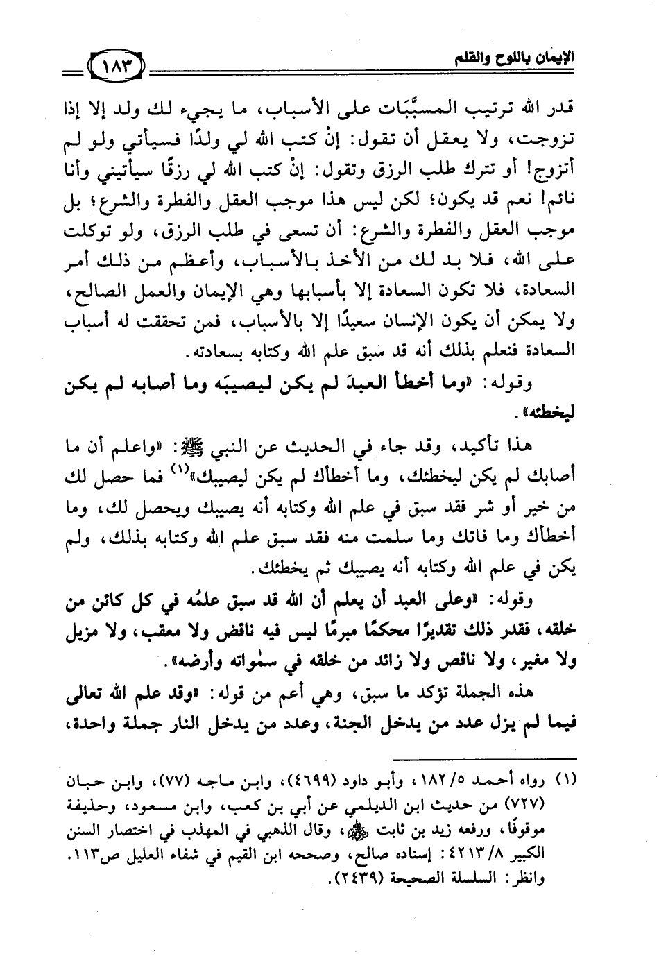 وقوله: (وما أخطأ العبدَ لم يكن ليصيبَه وما أصابه لم يكن ليخطئه).