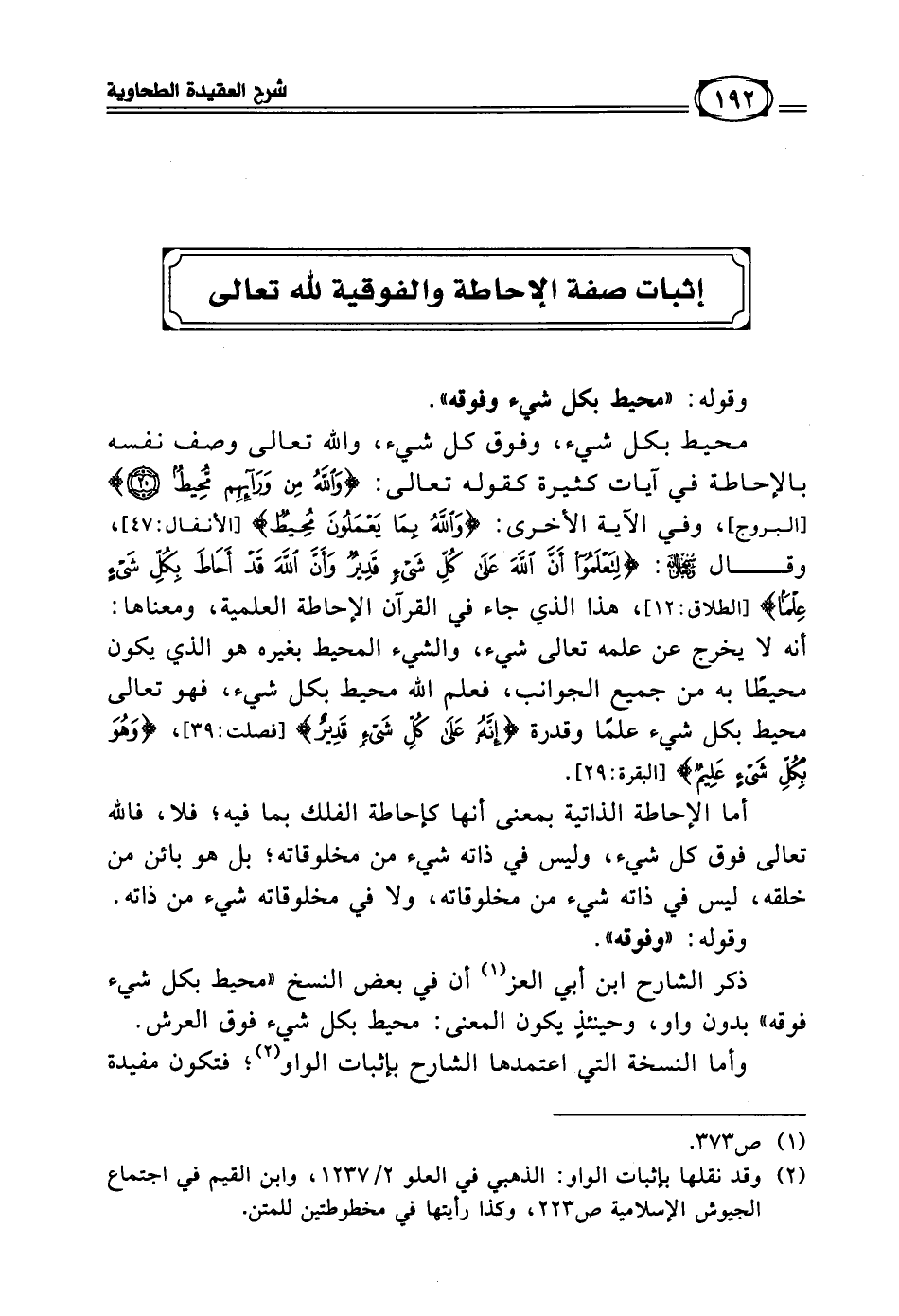 [إثبات صفة الإحاطة والفوقية لله تعالى]
