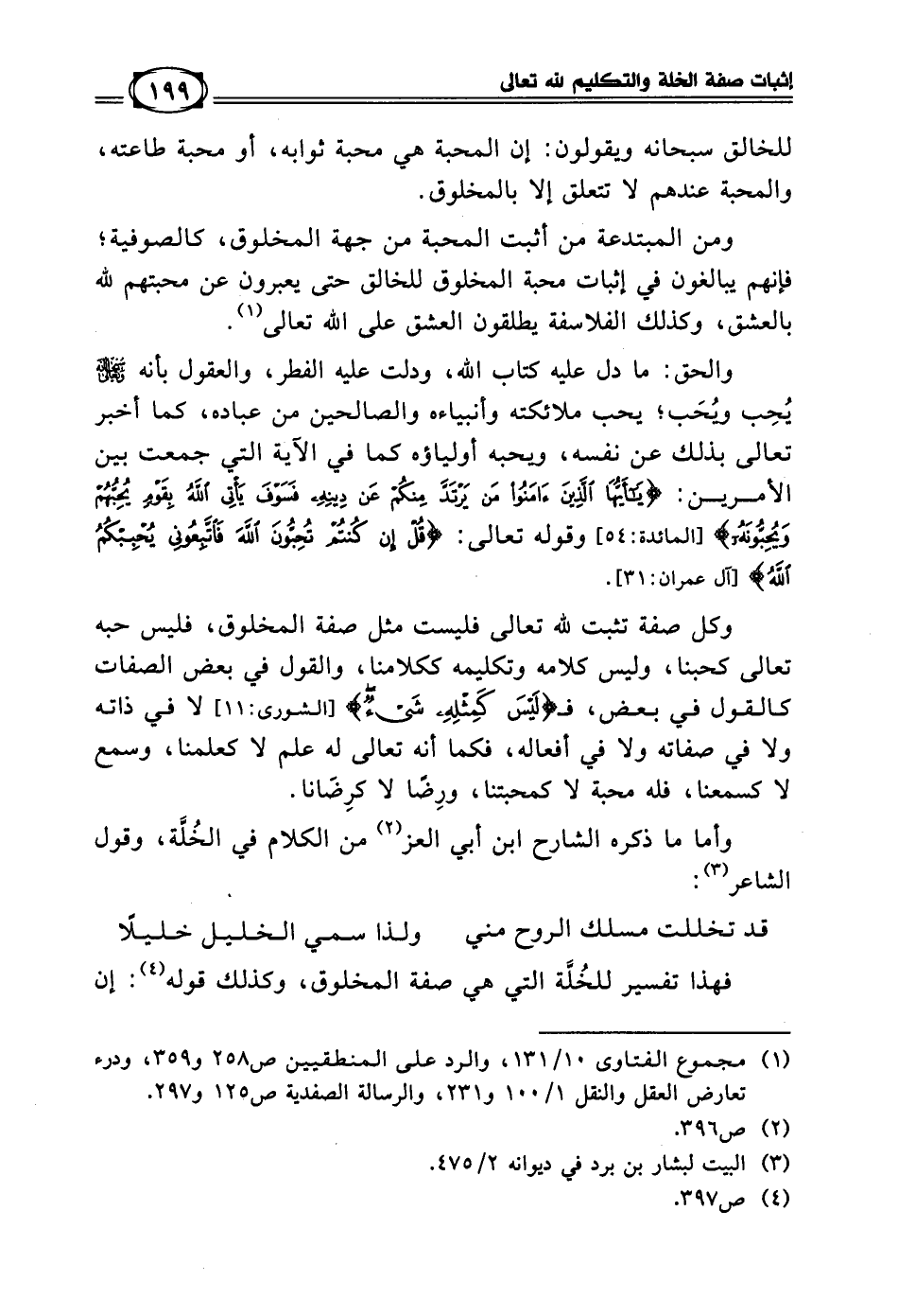 وأما ما ذكره الشارح ابن أبي العز (¬2) من الكلام في الخُلَّة، وقول الشاعر (¬3):