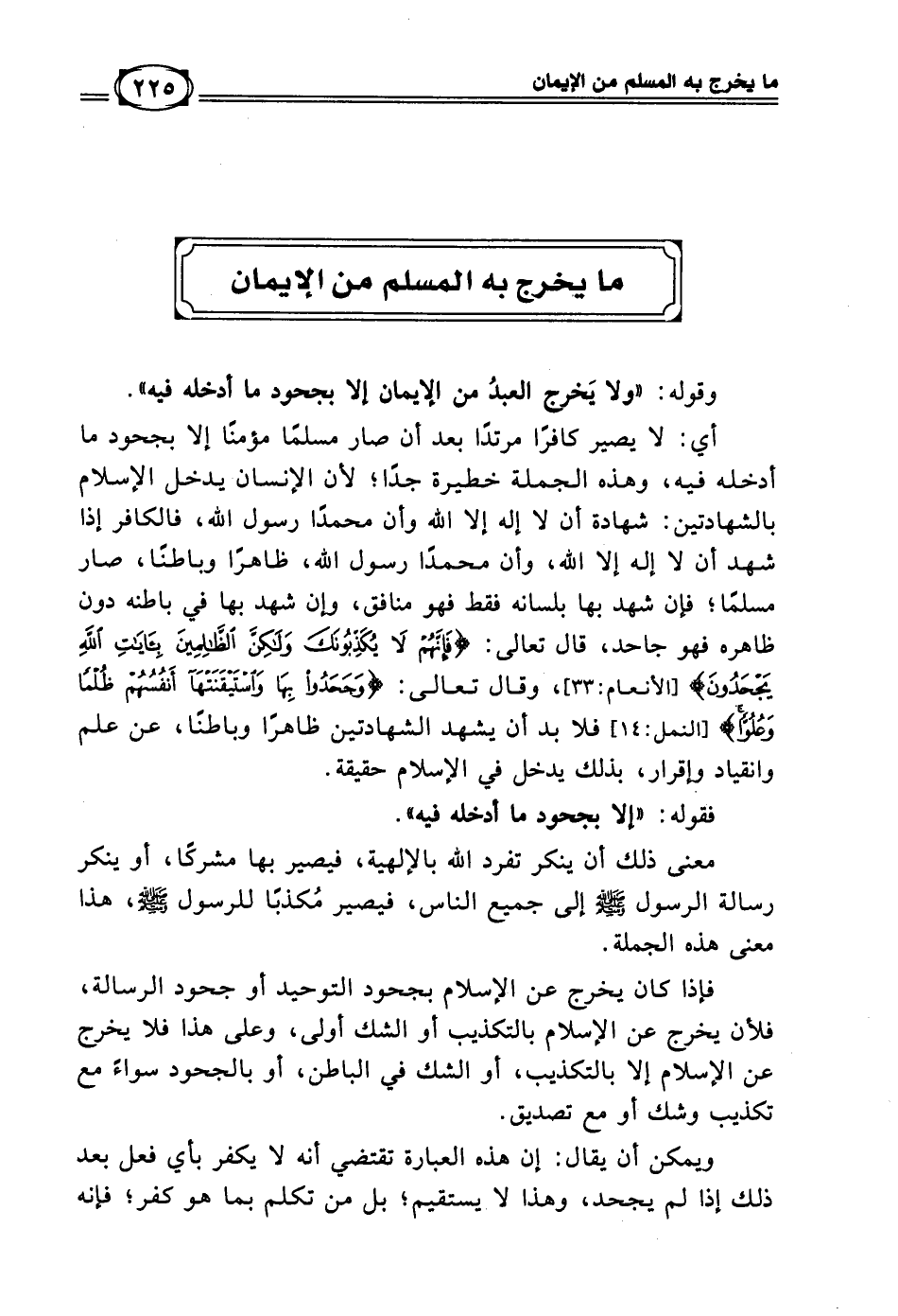 وقوله: (ولا يَخرج العبدُ من الإيمان إلا بجحود ما أدخله فيه).