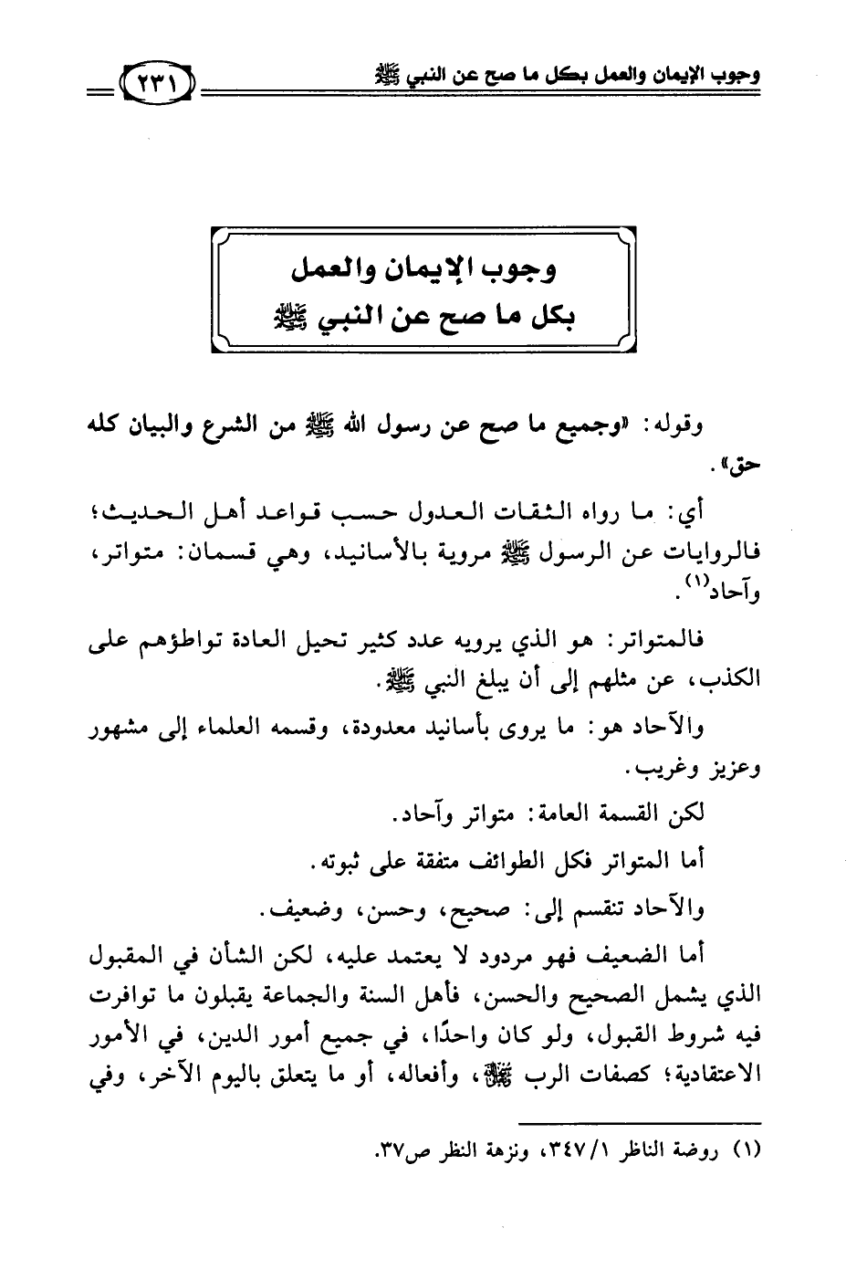 [وجوب الإيمان والعمل بكل ما صح عن النبي - صلى الله عليه وسلم -]