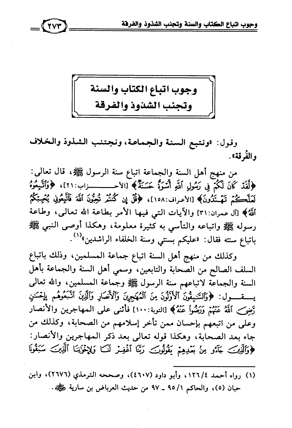 [وجوب إتباع الكتاب والسنة وتجنب الشذوذ والفرقة]