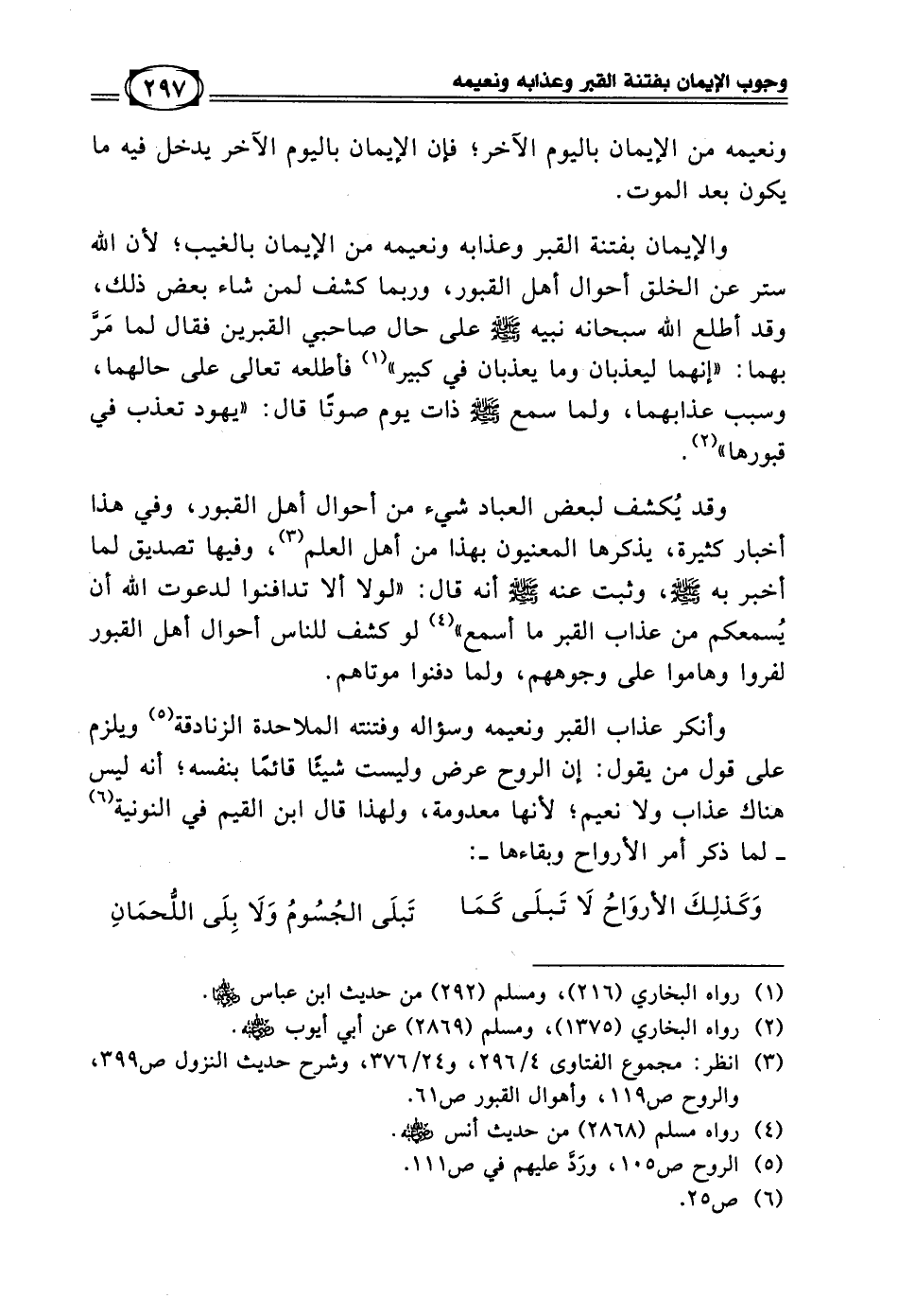 (¬3) انظر: مجموع الفتاوى 4/ 296، و 24/ 376، وشرح حديث النزول ص 399، والروح ص 119، وأهوال القبور ص 61.