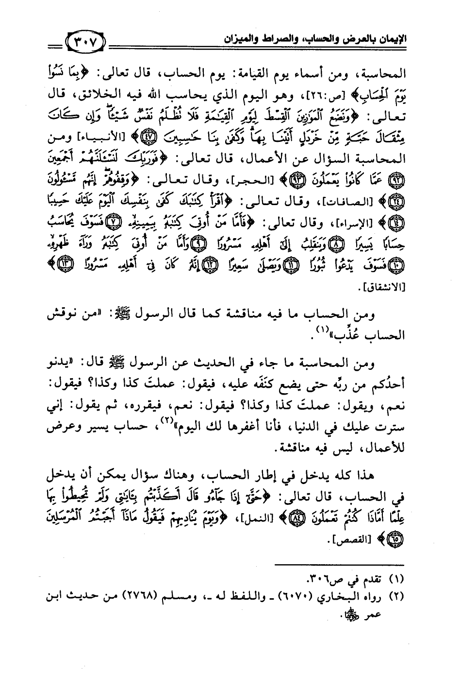 ومن الحساب ما فيه مناقشة كما قال الرسول - صلى الله عليه وسلم -: (من نوقش الحساب عُذِّب) (¬1).