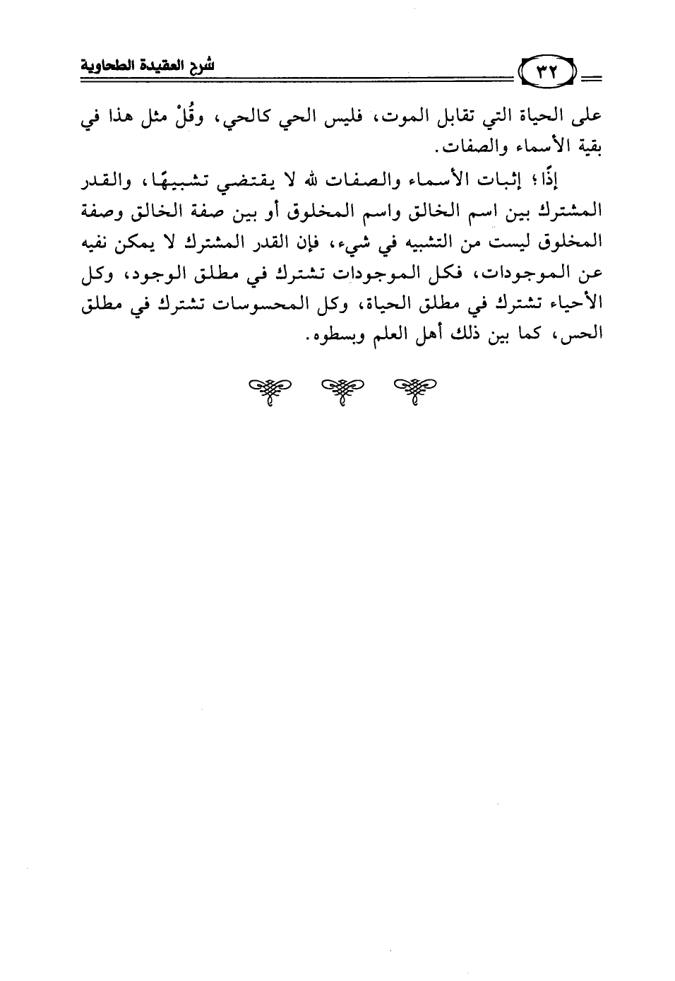 إذًا؛ إثبات الأسماء والصفات لله لا يقتضي تشبيها، والقدر المشترك بين اسم الخالق واسم المخلوق أو بين صفة الخالق وصفة المخلوق ليست من التشبيه في شيء، فإن القدر المشترك لا يمكن نفيه عن الموجودات، فكل الموجدات تشترك في مطلق الوجود, وكل الأحياء تشترك في مطلق الحياة، وكل المحسوسات تشترك في مطلق الحس، كما بين ذلك أهل العلم وبسطوه.