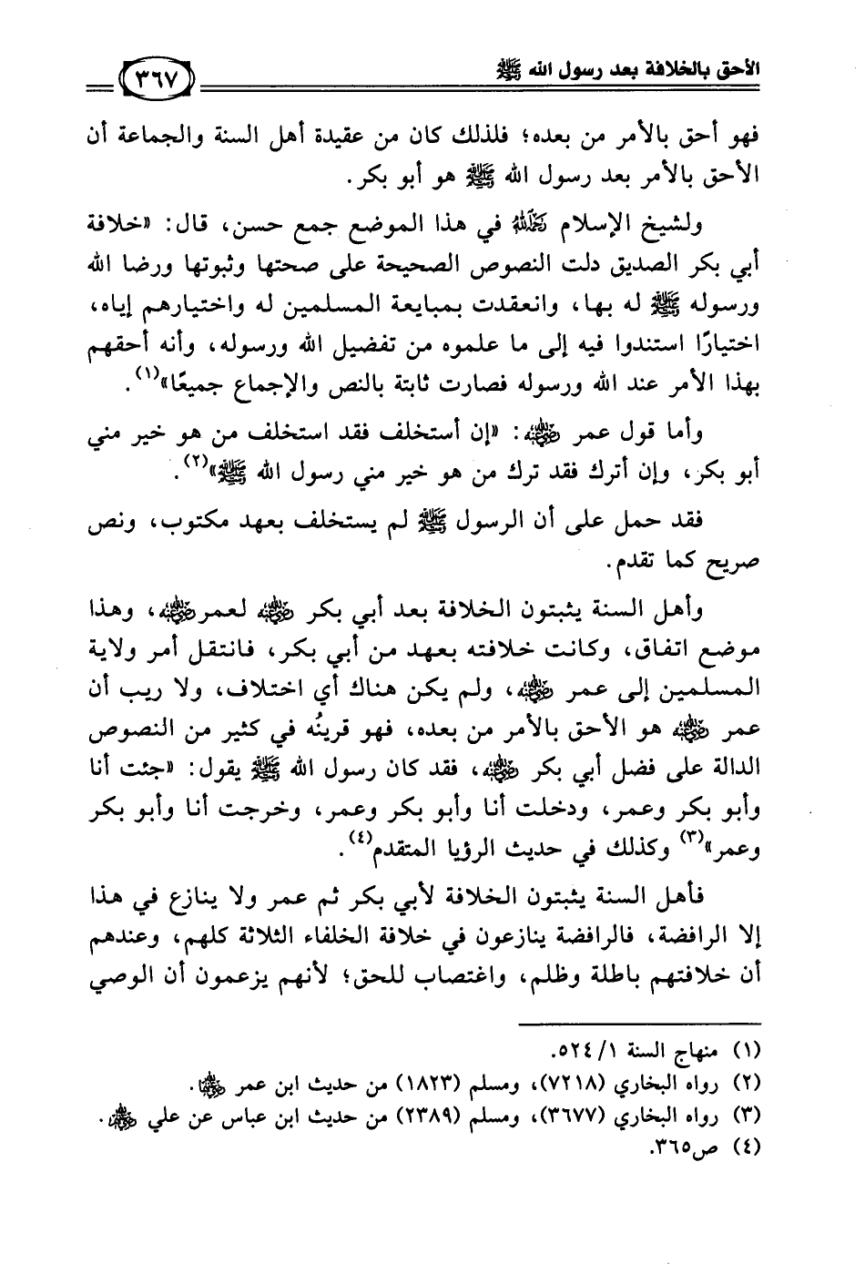 فهو أحق بالأمر من بعده؛ فلذلك كان من عقيدة أهل السنة والجماعة أن الأحق بالأمر بعد رسول الله - صلى الله عليه وسلم - هو أبو بكر.