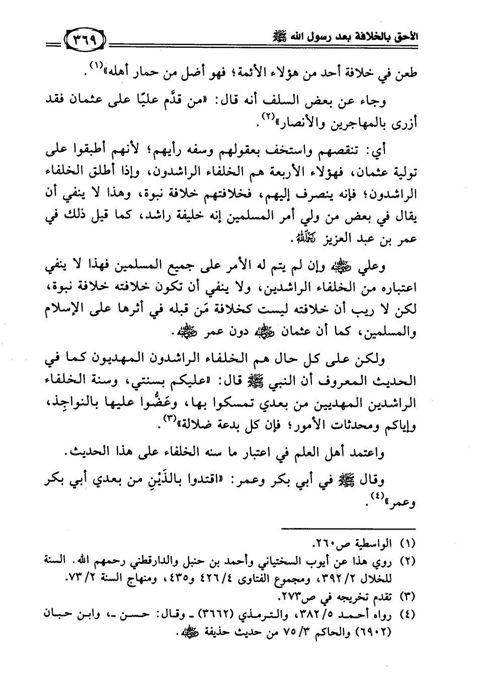 ولكن على كل حال هم الخلفاء الراشدون المهديون كما في الحديث المعروف أن النبي - صلى الله عليه وسلم - قال: (عليكم بسنتي، وسنة الخلفاء الراشدين المهديين من بعدي تمسكوا بها، وعَضَّوا عليها بالنواجِذ، وإياكم ومحدثات الأمور؛ فإن كل بدعة ضلالة) (¬3).
