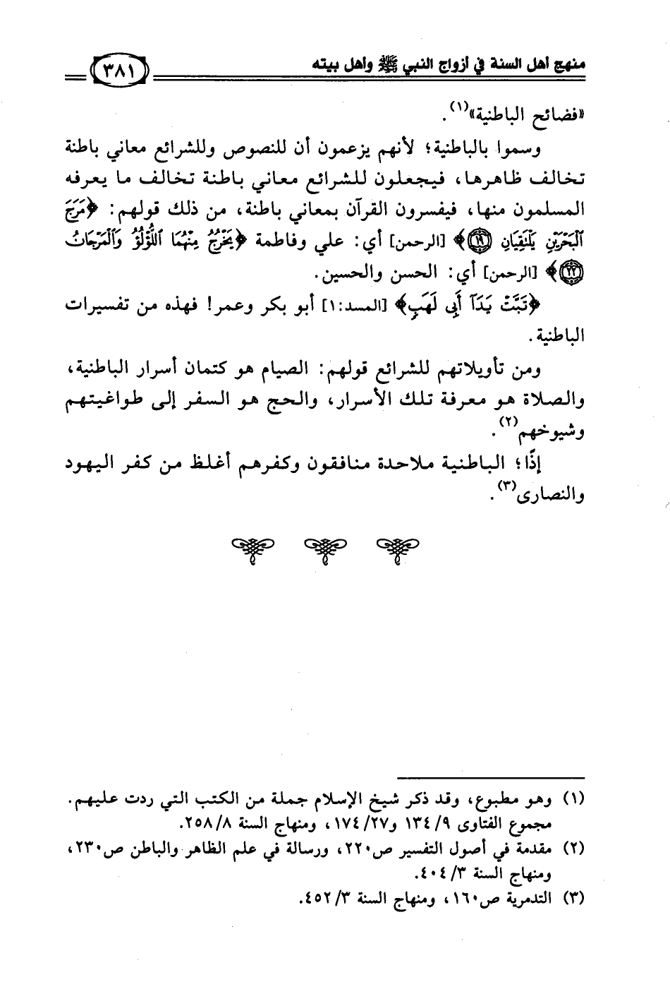 (¬2) حكاه عنهم شيخ الإسلام في: مقدمة في أصول التفسير ص 220، ورسالة في علم الظاهر والباطن 13/ 230، ومنهاج السنة 3/ 404، والصفدية ص 51.