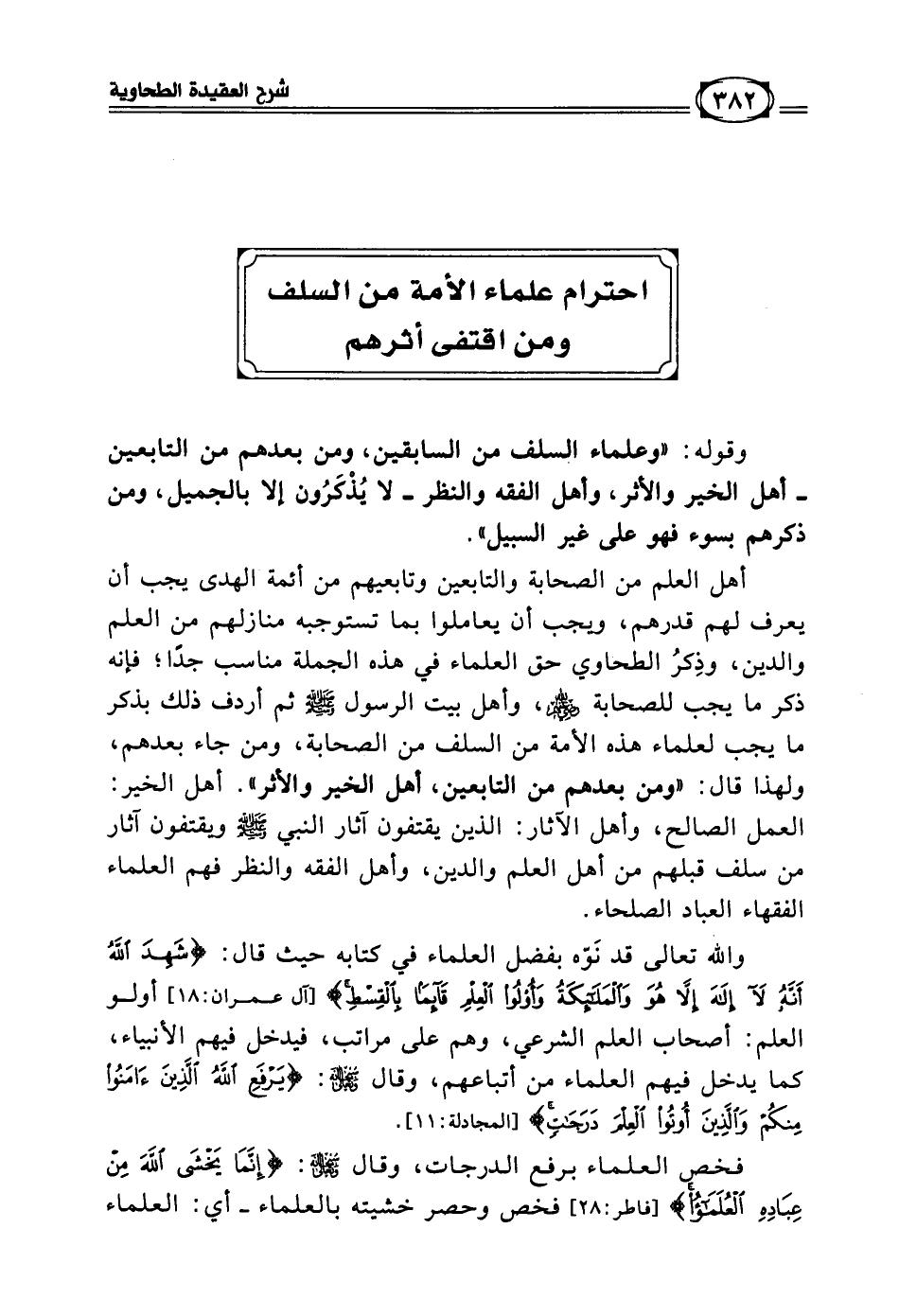 [احترام علماء الأمة من السلف ومن اقتفى أثرهم]